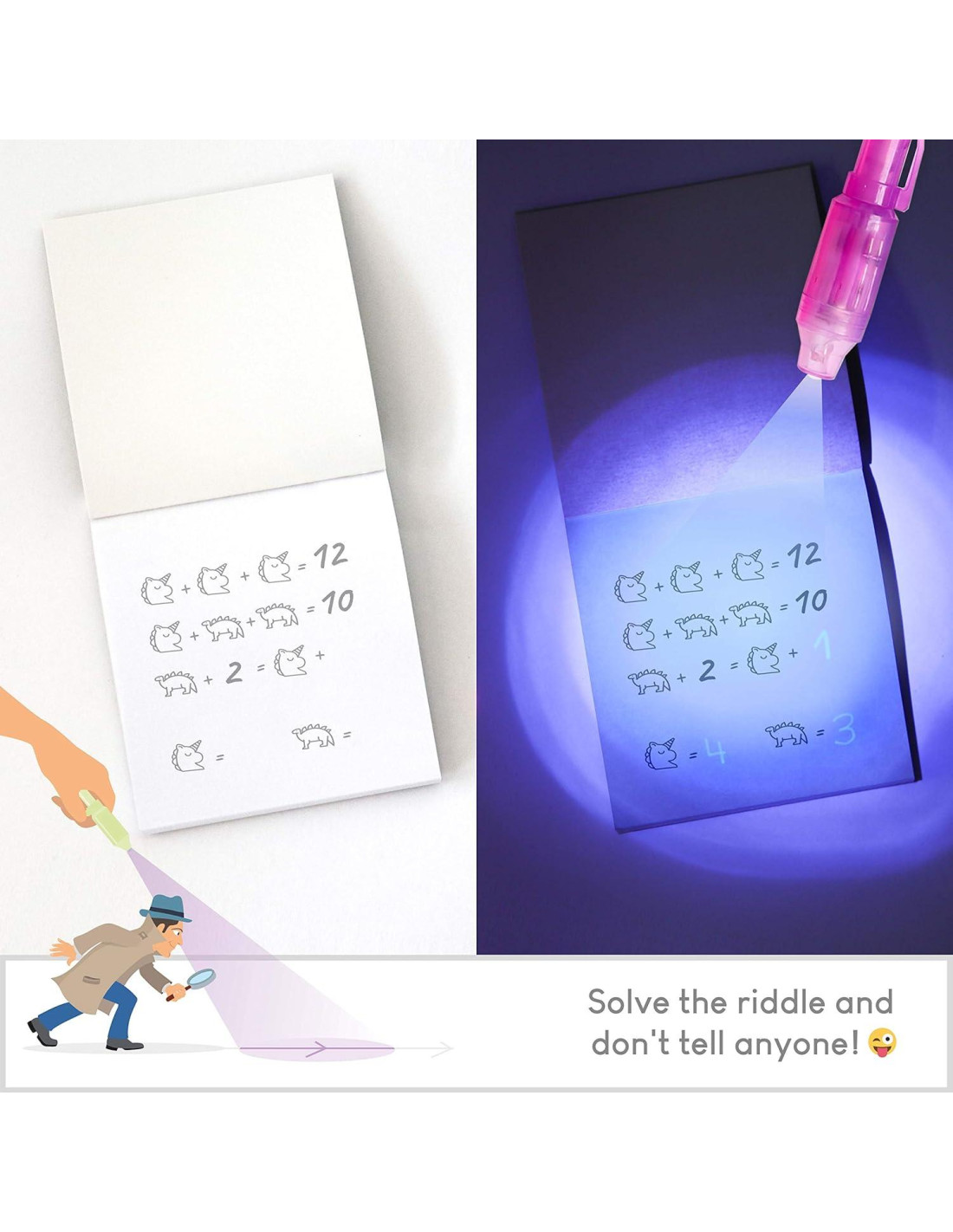 - MUY DIVERTIDOS Con estos bolígrafos divertidos para niños pueden escribir frases o dibujos secretos en los cuadernos que solo pueden ser descubiertos al iluminar con la luz ultravioleta del bolígrafo. Regalos de fiesta muy económicos para niños de 8-12 años y niños de 4-8 años para impresionar a chicos y chicas