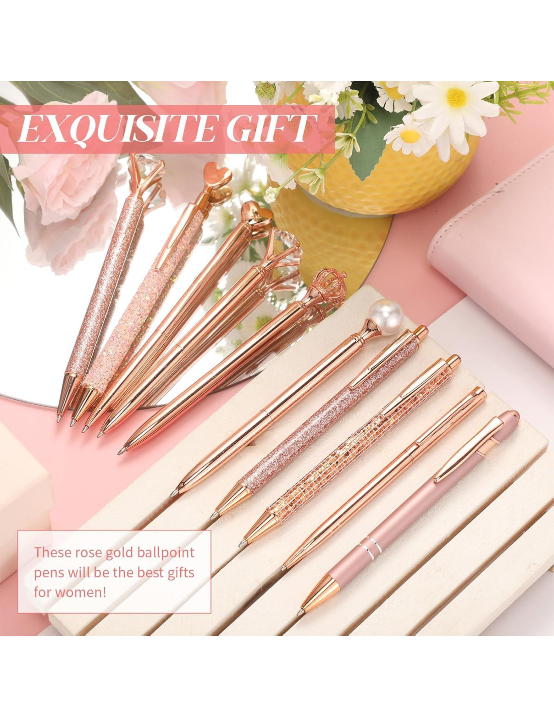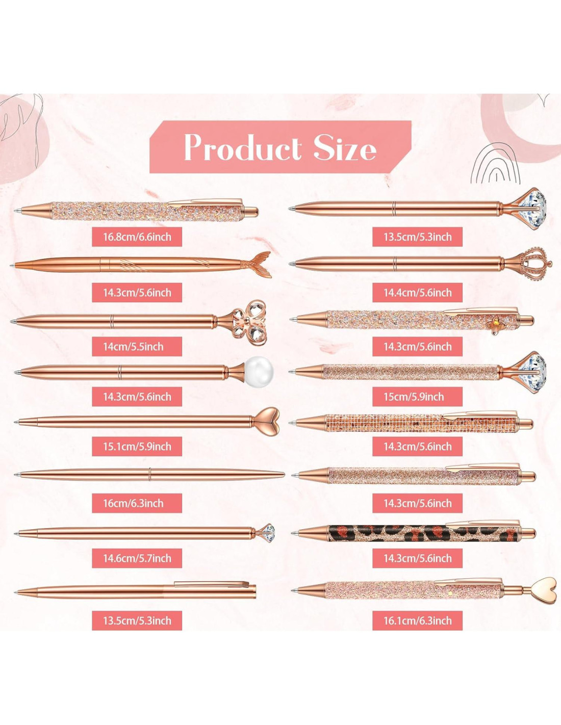 - Conjunto de Bolígrafos: te proporcionaremos 16 piezas de bolígrafos oro rosa para journaling en el paquete, disponibles en 16 diseños, una pieza para cada diseño; Diseños ricos pueden satisfacer tus diversas necesidades de uso y reemplazo en la vida diaria; Uno o dos estilos y colores pueden ser diferentes de las imágenes debido a diferentes lotes de producción