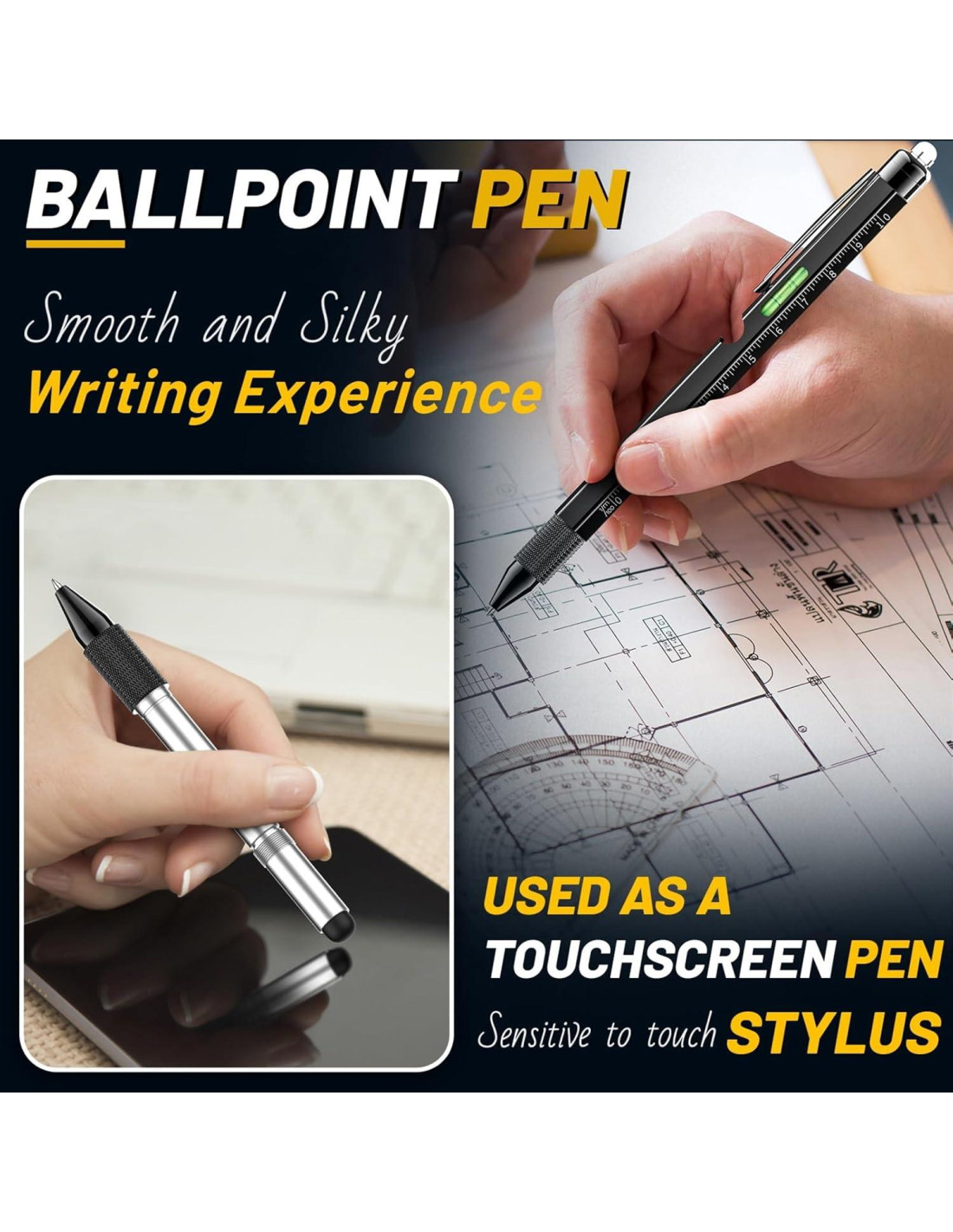 - Bolígrafos de novedad versátiles 9 en 1 para hombres: A diferencia de otros bolígrafos de plástico, nuestro bolígrafo multi-herramienta está fabricado con material de hierro de aluminio, asegurando durabilidad y fiabilidad. Funciona como un práctico bolígrafo, luz LED, bolígrafo stylus, nivel pequeño, herramienta de medición, destornillador ranurado, destornillador de cabeza Phillips, soporte para teléfono y abridor de botellas.