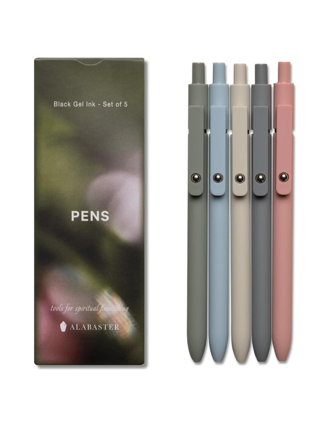 Aporta un toque de sofisticación a tu escritura con el Paquete de Variedad de Bolígrafos Pastel de Alabaster Co. Este hermoso conjunto curado presenta 5 bolígrafos elegantes de colores pastel, cada uno lleno de tinta de gel negra suave. Perfectos para journaling, toma de notas, estudio bíblico y uso diario, estos bolígrafos combinan un diseño moderno con una funcionalidad sin esfuerzo.