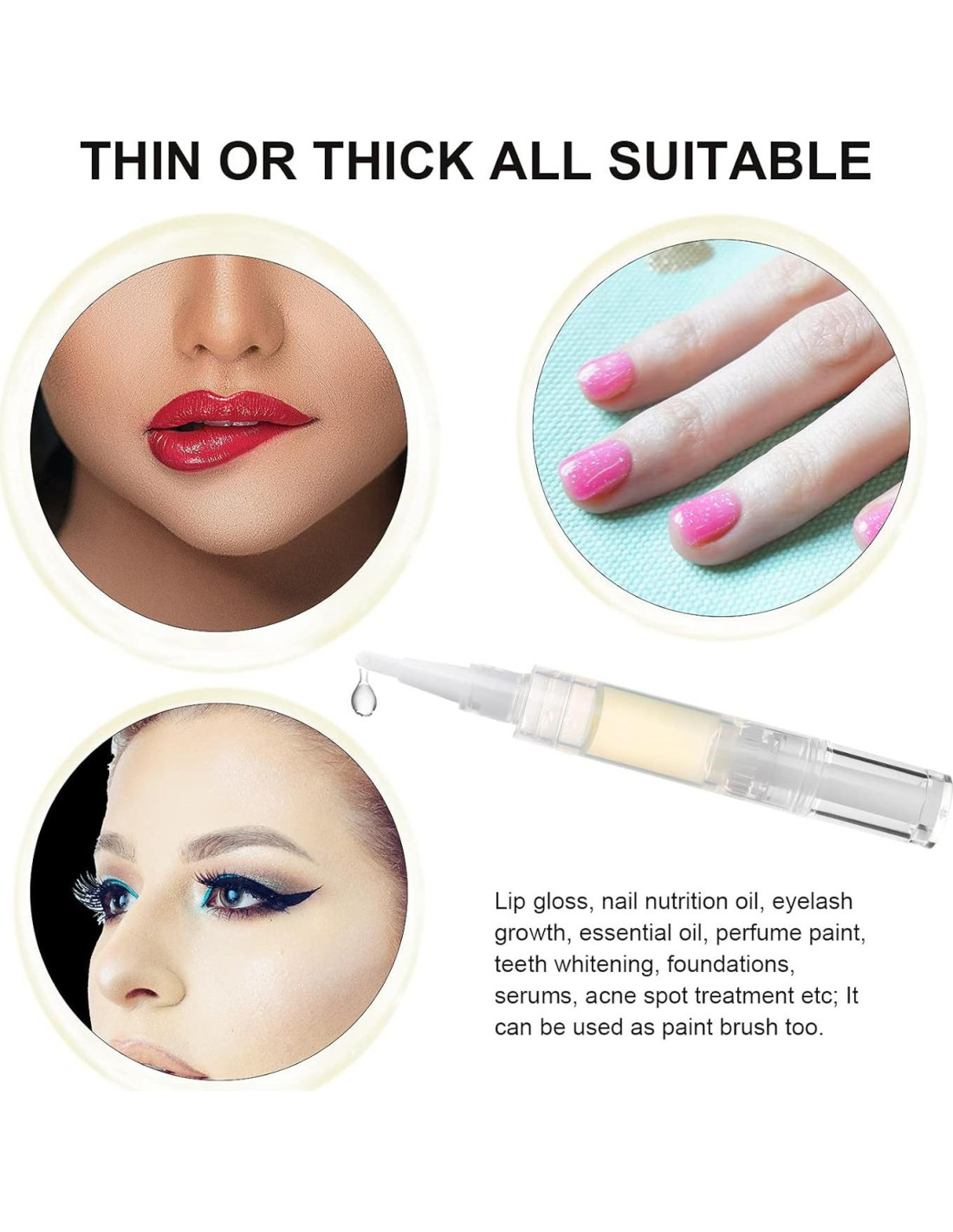 - AMPLIA APLICACIÓN: Adecuado para líquidos delgados o gruesos, como brillo labial, aceite de nutrición para uñas, crema para crecimiento de pestañas, aceite esencial, blanqueamiento dental, bases, sueros, tratamiento de manchas de acné, etc.; también se puede usar como pincel. (No es adecuado para llenar líquidos de alta concentración de ácido, alcalino o alcohol.)