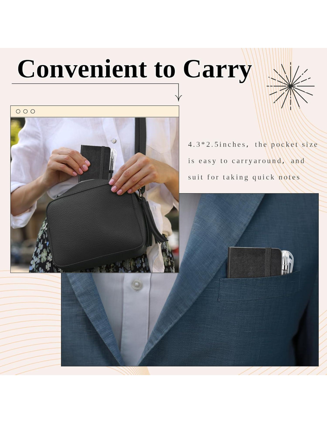- Lleno de Características para la Conveniencia: estos mini cuadernos de cuero con bolígrafos no son solo sobre apariencia y durabilidad, cada cuaderno de bolsillo tiene una variedad de características funcionales como una capacidad de 100 páginas (50 hojas), líneas pautadas para escribir, un soporte elástico para bolígrafo para una colocación segura, esquinas redondeadas para evitar accidentes de corte de papel no deseados, y cintas de marcador para señalar tu lugar