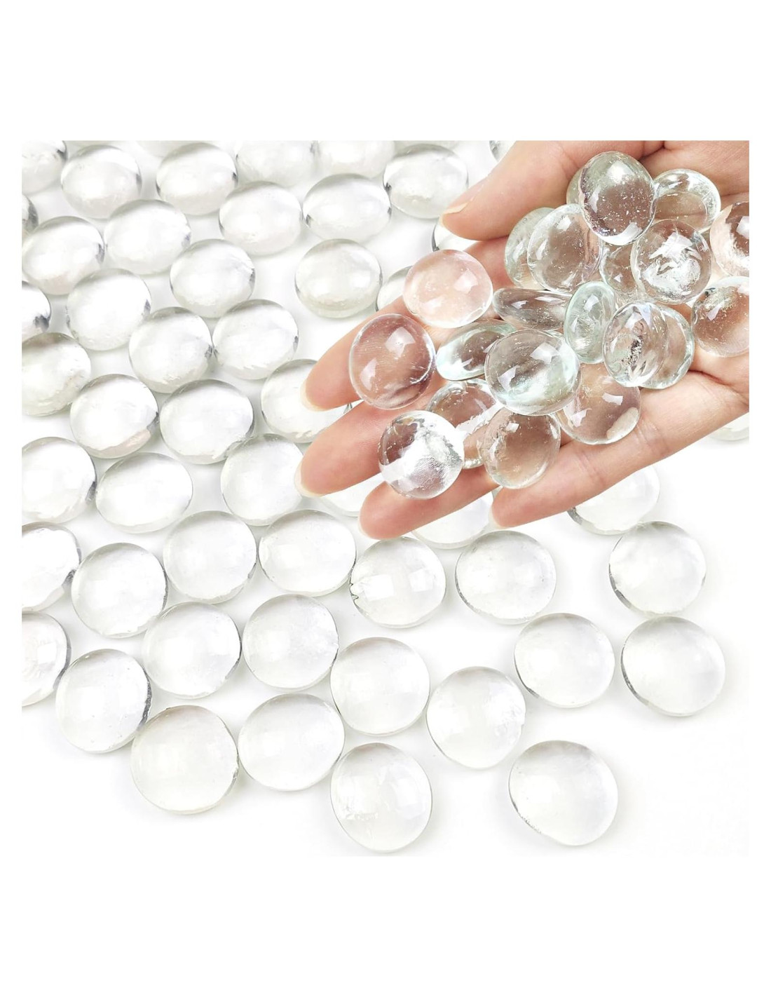 - 10lb Gemas de Vidrio Transparente Gemas de Vidrio Transparente aproximadamente 900-1000 pcs/bag. Cada diámetro es de aproximadamente 0.7 - 0.8 pulgadas (1.78 - 2.03 cm). Fondo plano con parte superior redondeada