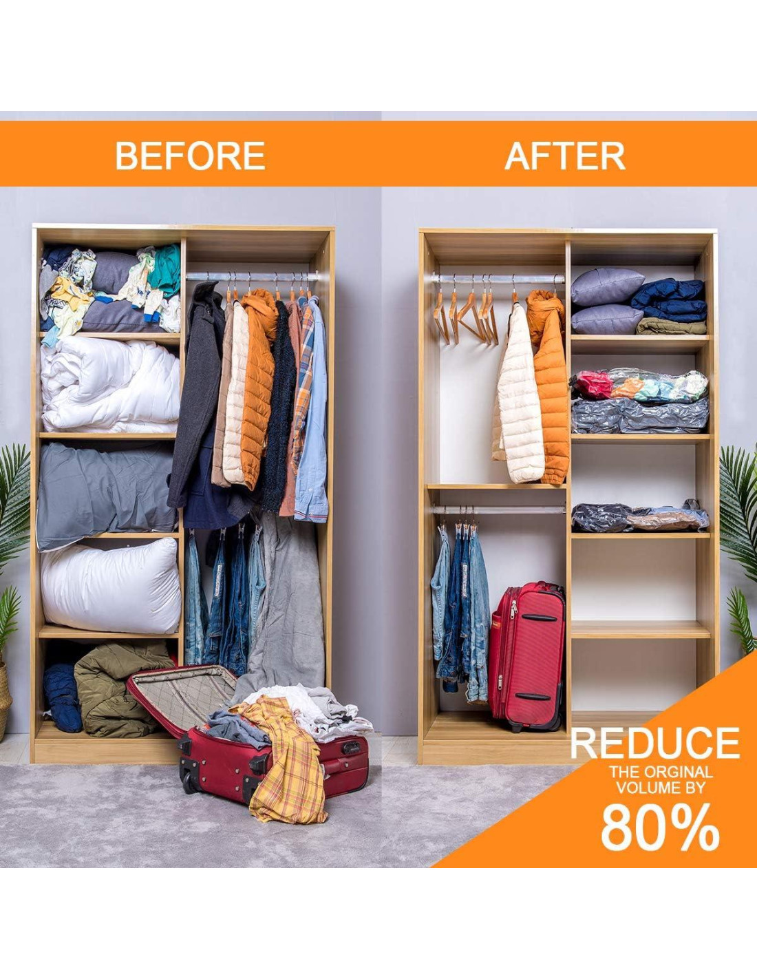 - Compresión Inteligente, Defensa Duradera: Construido con plástico grueso de grado industrial, nuestras bolsas de empaque de plástico ahorradoras de espacio combinan un sistema de sellado de 4 puntos y bordes reforzados. Aplana artículos voluminosos para maximizar el espacio en el armario mientras proteges las telas del polvo, polillas y humedad durante años.