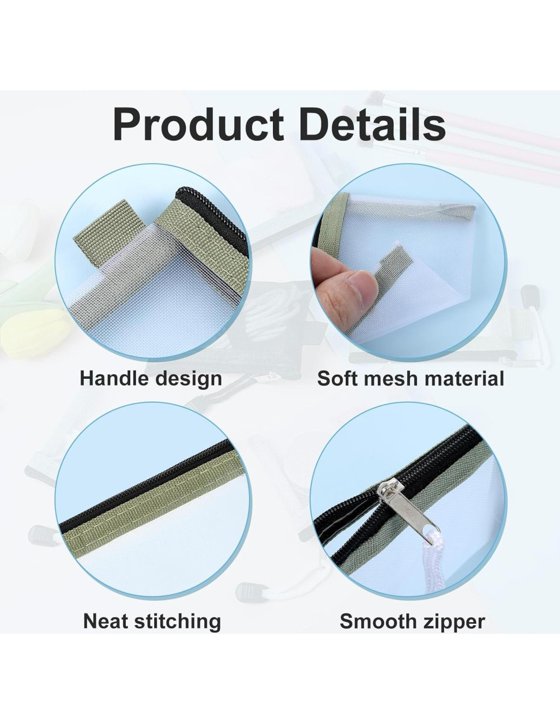 - [Amplia aplicación] La bolsa de maquillaje de malla se puede usar como bolsa de almacenamiento para viajes o bolsa de almacenamiento para billetera, utilizada para su maquillaje como pintalabios, polvo, rubor, esmalte de uñas o artículos pequeños como llaves, tarjetas de crédito, tarjeta de identificación, auriculares, cables de carga, etc.