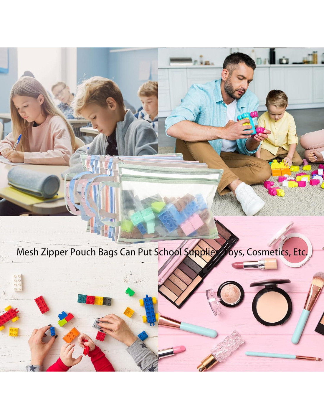 - [Diseño de Doble Capa] Las bolsas de cremallera de malla transpirables, cada una de doble capa, te permiten almacenar diferentes artículos. Una capa puede contener libros de instrucciones, y la otra puede almacenar piezas de juguetes. Cada conjunto de juguetes tiene su propia bolsa dedicada. Tanto los niños como los padres encontrarán fácil y divertido mantener sus juguetes ordenados.