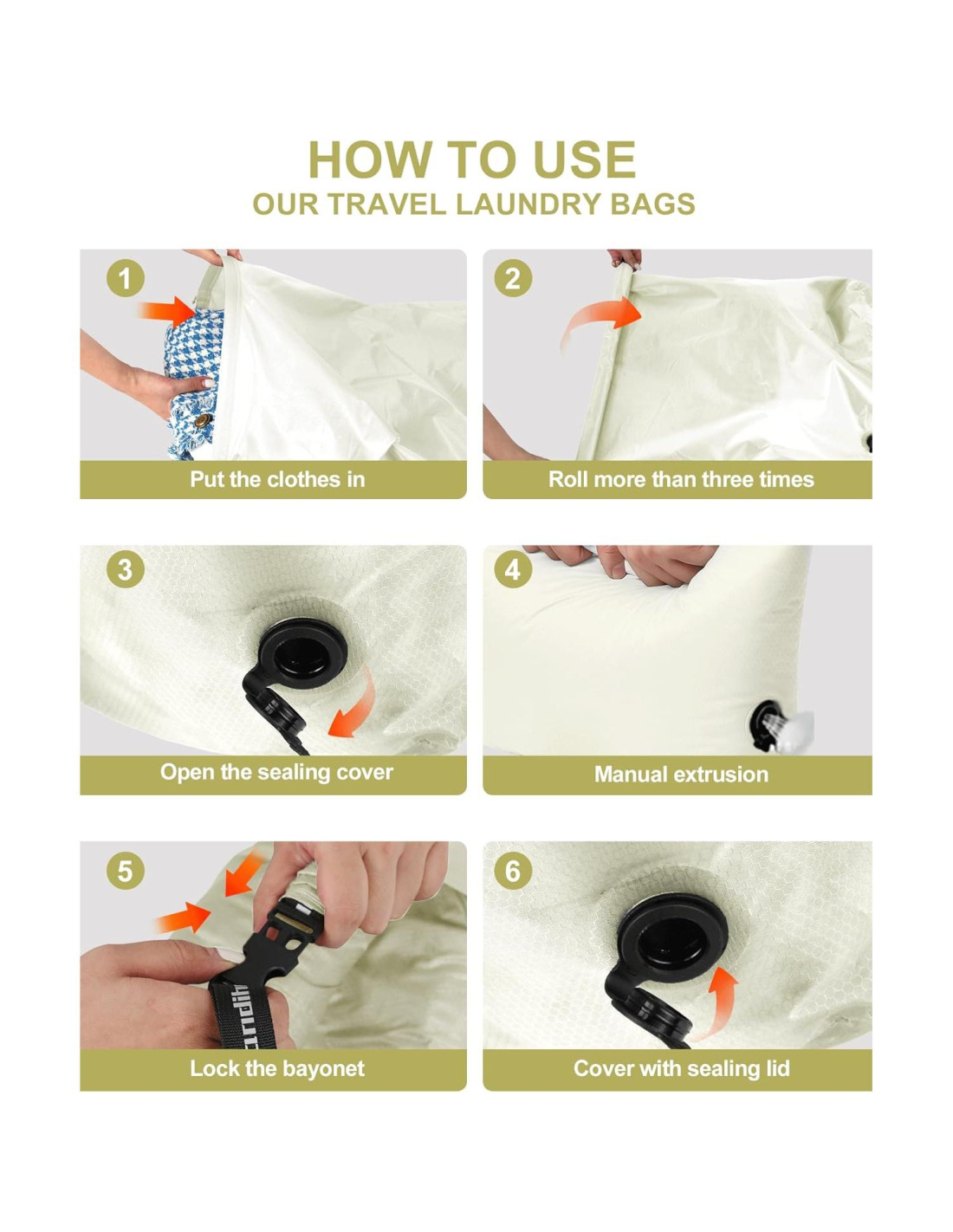 - Fácil de Comprimir: Esta bolsa de lavandería de compresión se puede comprimir fácilmente en más del 50% de su volumen solo con tus manos y rodillas, sin herramientas especiales. Nuestro diseño intuitivo facilita ahorrar espacio y mantener tu equipaje organizado incluso cuando estás en movimiento.