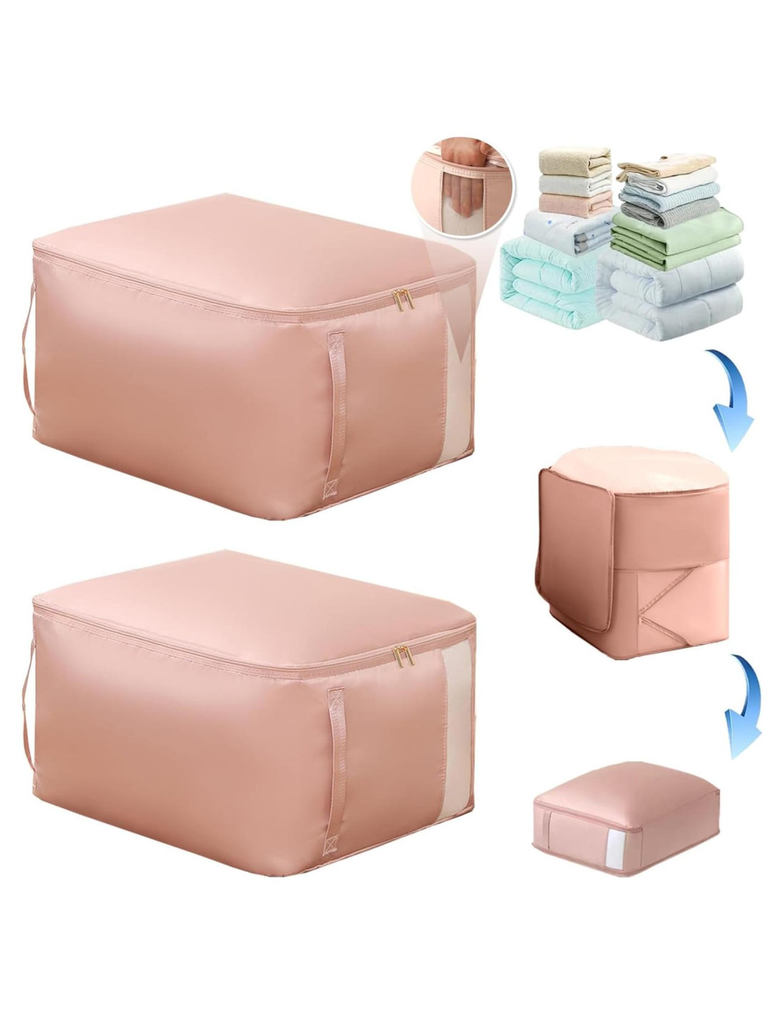 - [Repetible y lavable a máquina] : las bolsas de compresión para almacenamiento se pueden lavar suavemente a máquina. Libera tus manos, la bolsa de almacenamiento de compresión autoahorradora es un organizador de ropa tridimensional ligeramente rígido, fácil de alcanzar los artículos, se puede plegar en un tamaño de bolsillo, almacenamiento que ahorra espacio, reciclaje.