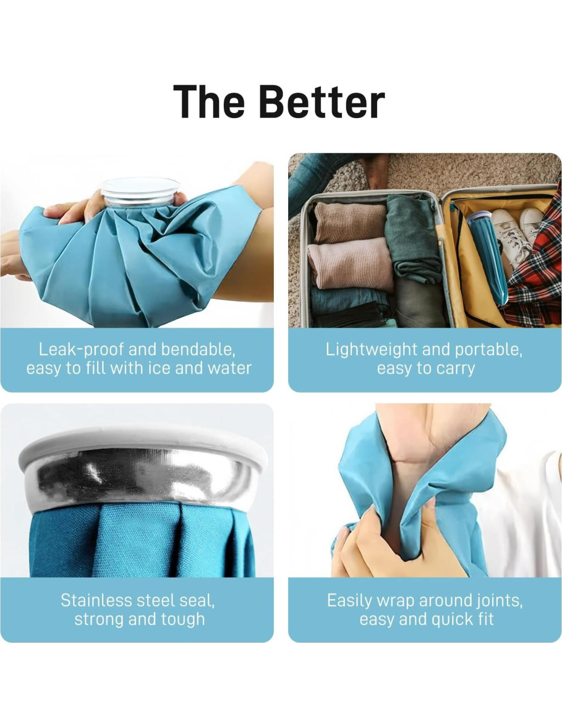 - Terapia Fría y Caliente: Para la terapia fría, agregue una cantidad adecuada de cubitos de hielo y agua a una bolsa de hielo para aliviar el dolor muscular, la hinchazón, esguinces y dolores de muelas, dolores de cabeza, fiebres, etc. Para la terapia de calor: Agregue agua caliente a las bolsas de hielo para aliviar malestar estomacal, dolor de espalda, de cabeza y de articulaciones.