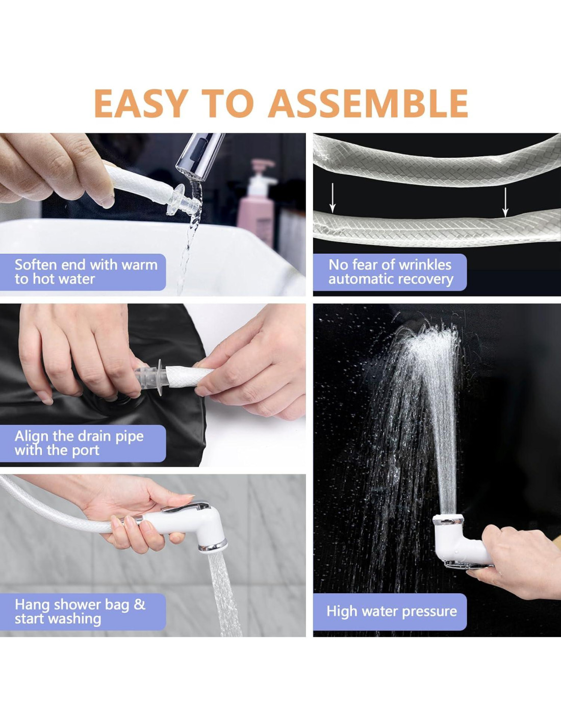 - Fácil de Usar en Cualquier Lugar - No se necesita instalaciones de ducha tradicionales, nuestra Bolsa de Agua para Ducha y Cuenca Inflable para Champú son fáciles de usar en cualquier lugar. Simplemente llena la bolsa de agua con agua tibia, cuélgala en un gancho u otro soporte, y comienza a lavar. Es rápido de configurar, portátil y una alternativa conveniente a usar jarros/balde de agua para lavar y enjuagar.