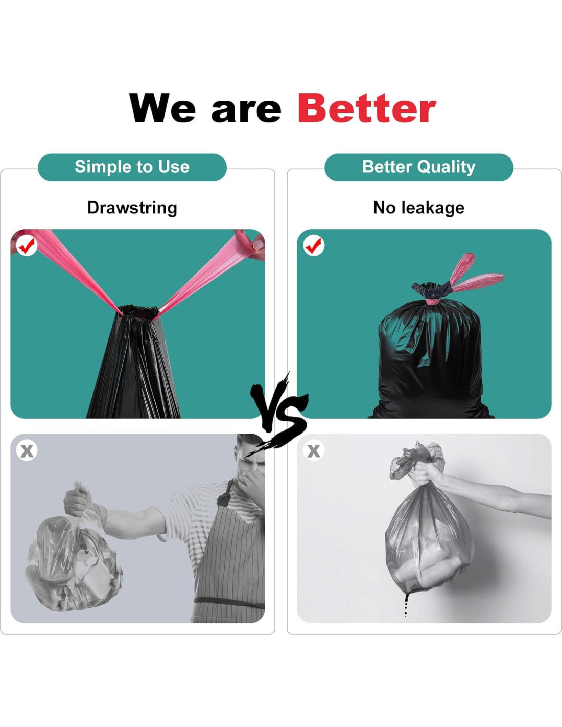- [Diseño Conveniente con Cierre de Cuerda] Estas bolsas de desecho cuentan con un cierre de cuerda incorporado para un sellado fácil e higiénico. El cierre de cuerda permite un cierre rápido, lo que facilita atar la bolsa y contener de manera segura los desechos.