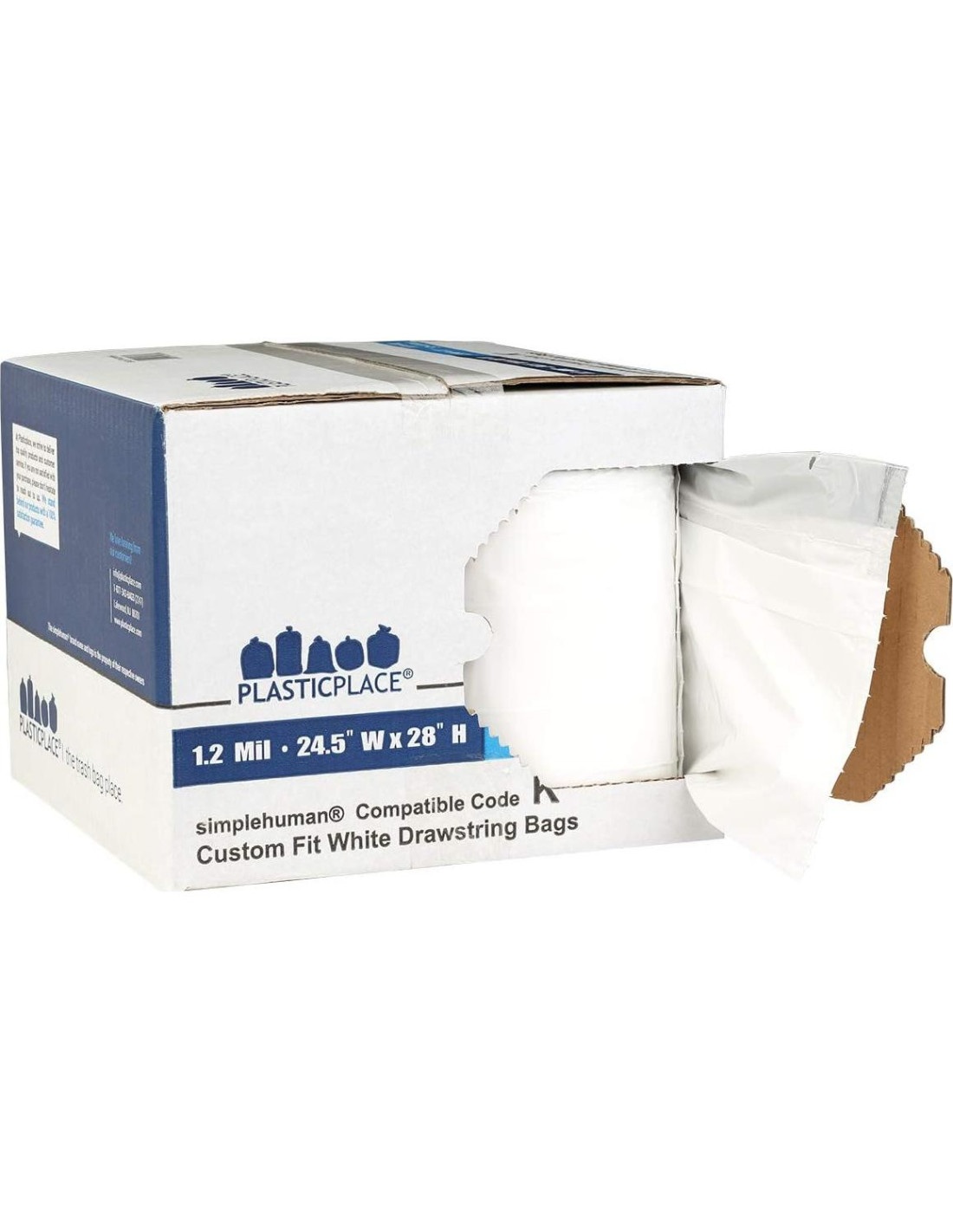 ¿Cansado de gastar más en bolsas de basura caras? La marca Plasticplace ha creado bolsas de basura alternativas, que se ajustan perfectamente a su bote de basura Código K. Con un grosor super de 1.2 Mil (0.0305 mm), convirtiéndola en una bolsa de basura resistente a desgarros, tienes la bolsa de calidad definitiva. Las cuerdas reforzadas, hacen que sea muy fácil sacarlas del bote y llevarlas.