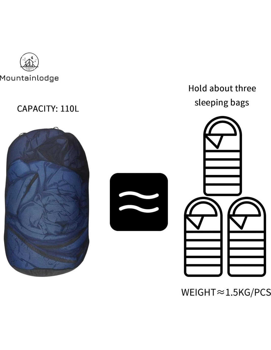 - Capacidad 110L - El Saco de Almacenamiento para Sacos de Dormir es un imprescindible para cualquiera que ame las actividades al aire libre. Con una gran capacidad de 110L, proporciona amplio espacio para almacenar tus sacos de dormir y mantenerlos a salvo de los elementos.