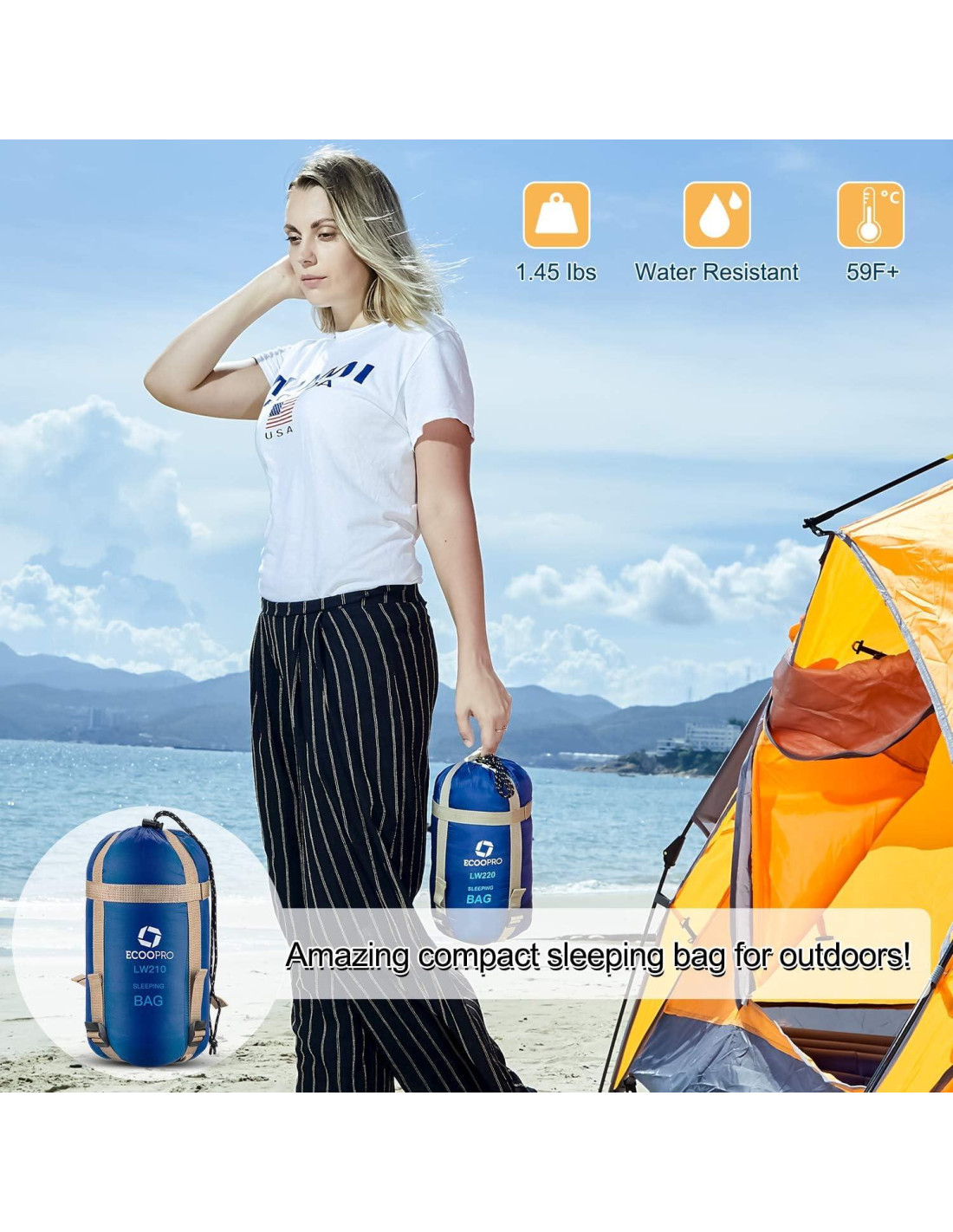 - [Compacto y ligero, fácil de llevar] A diferencia de los sacos de dormir de plumas, nuestro saco de dormir tipo sobre es fácil de enrollar en el saco de transporte y se puede comprimir a solo 28 cm de altura y 0.77 kg de peso. Es ideal para entusiastas del mochileo.