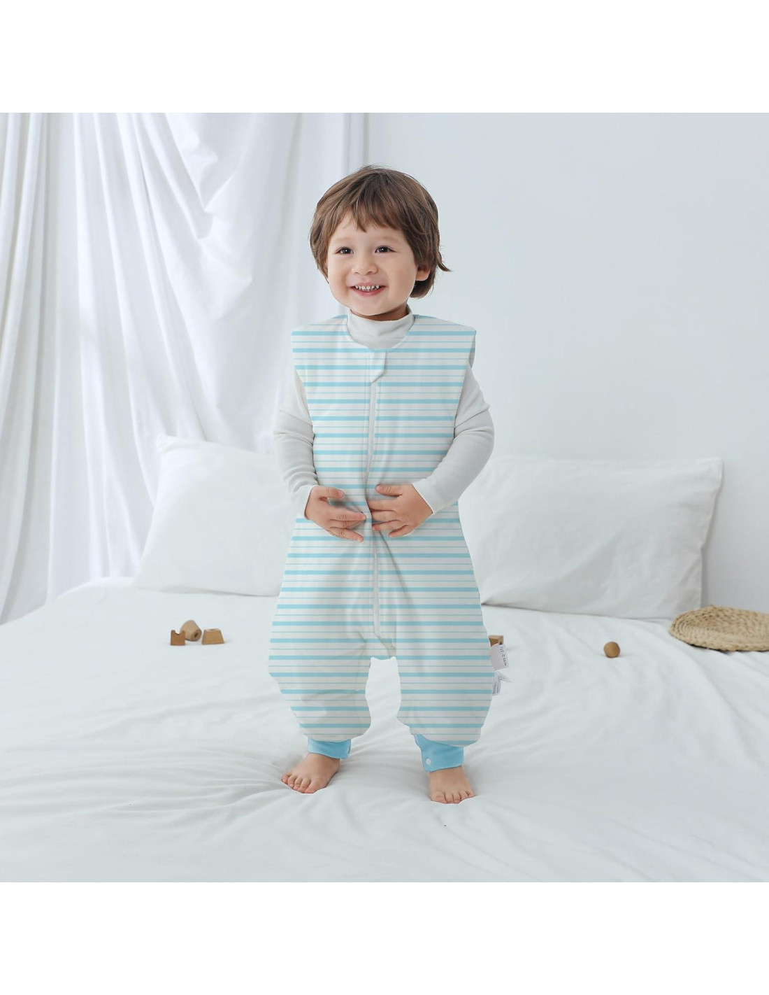 - SACO DE SUEÑO ULTRA SUAVE Y EXTRA CÁLIDO - Hecho de 100% algodón con una calificación TOG de 2.5, nuestro saco de sueño con piernas es suave, acogedor y cálido para usar en temperaturas de habitación de 16-20C. El relleno está hecho de fibra de poliéster ultra-ligera y ultra-cálida. Mantiene al bebé cálido y seguro durante toda la noche.