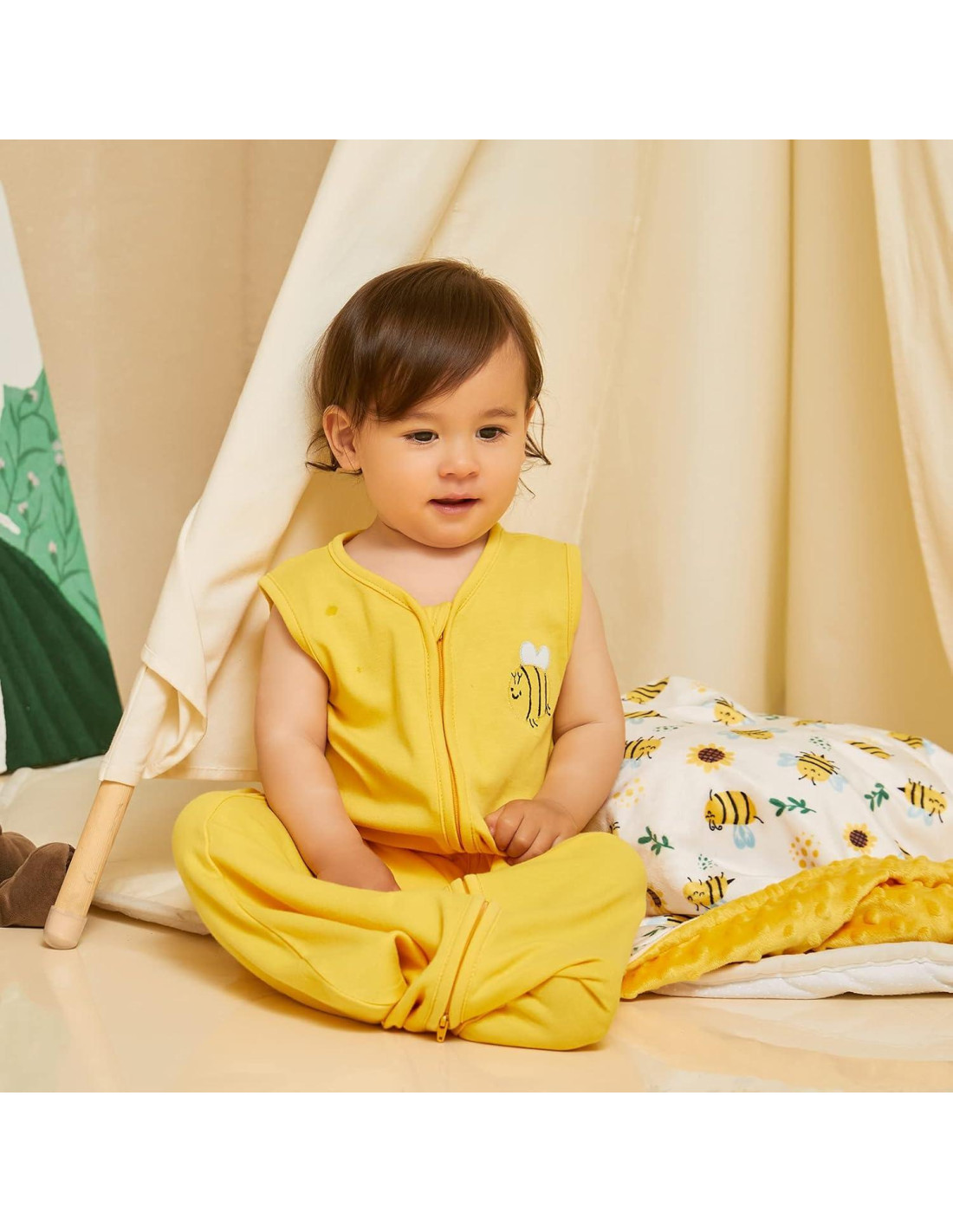 - Atractivo Patrón de Abeja: Lindos sacos de sueño unisex para bebés amarillos con patrón de abeja bordado e impreso, despierta la curiosidad de su pequeño. Sacos de sueño portátiles para bebés de 6-12 meses, adecuados para envolver, cuna, cochecito, viajar, picnic y acampar.