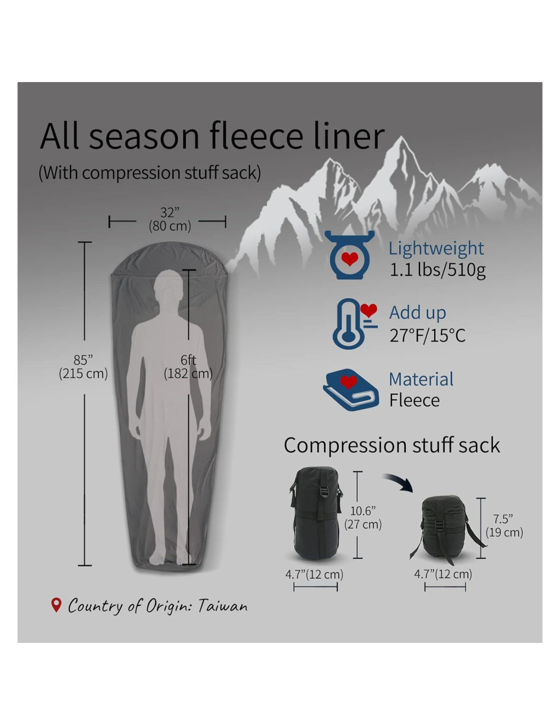 - MÁS GRUESO Y CÁLIDO: Nuestros forros de saco de dormir ligeros están hechos con franela gruesa, suave y ligera para proporcionarte una forma conveniente de mantenerte cálido y cómodo al aire libre. Este forro de saco de dormir para todas las estaciones puede agregar hasta 27F a tu saco de dormir para que puedas dormir cómodamente toda la noche