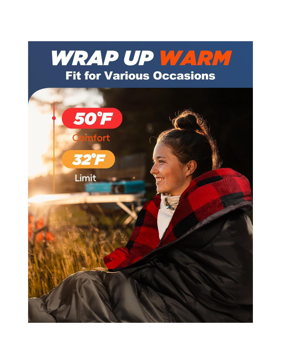 - ALMOHADA SUAVE INCLUIDA: Este saco de dormir XL viene con una almohada rellena de 220G ultra suave. No se necesita equipo adicional, solo empácalo en un saco de compresión compacto y comienza tus aventuras de camping, senderismo o mochileo