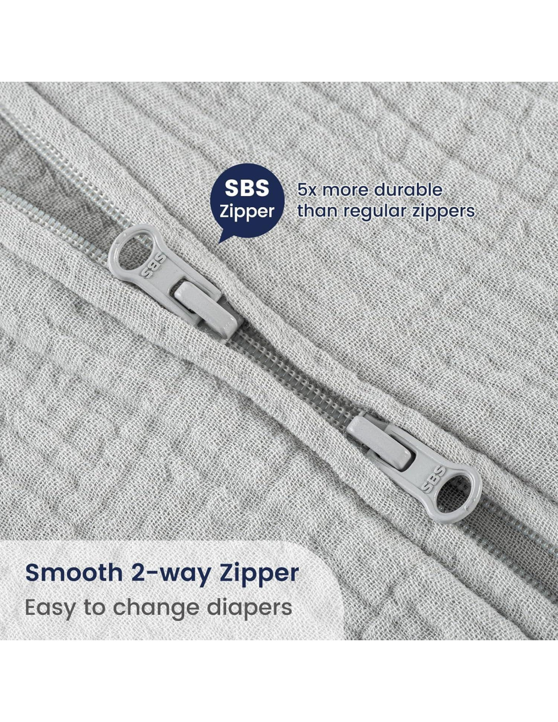 - Cierre de 2 Vías y Seguro: El saco de dormir PHF cuenta con cremallera SBS que es más duradera que las cremalleras ordinarias. El diseño de cremalleras de 2 vías es fácil y conveniente para los cambios de pañales sin quitar a su bebé del saco de dormir. Además, nuestro protector de cremallera interno y la cubierta superior de la cremallera protegen la barbilla y el vientre de su bebé de rasguños, asegurando la seguridad y comodidad de su adorable bebé.