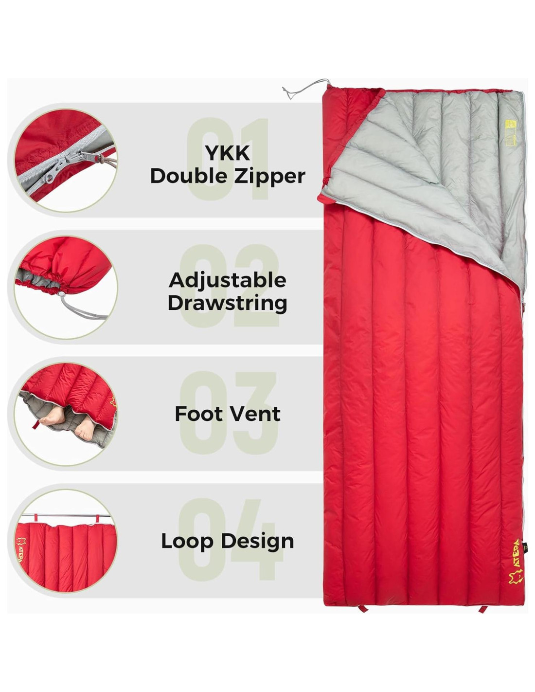- MULTIFUNCIONAL: El cierre YKK de longitud completa permite desabrocharse completamente como una manta plana, mientras que dos sacos de dormir se pueden unir verticalmente para crear un saco de dormir doble - ideal para parejas o control de temperatura adaptable