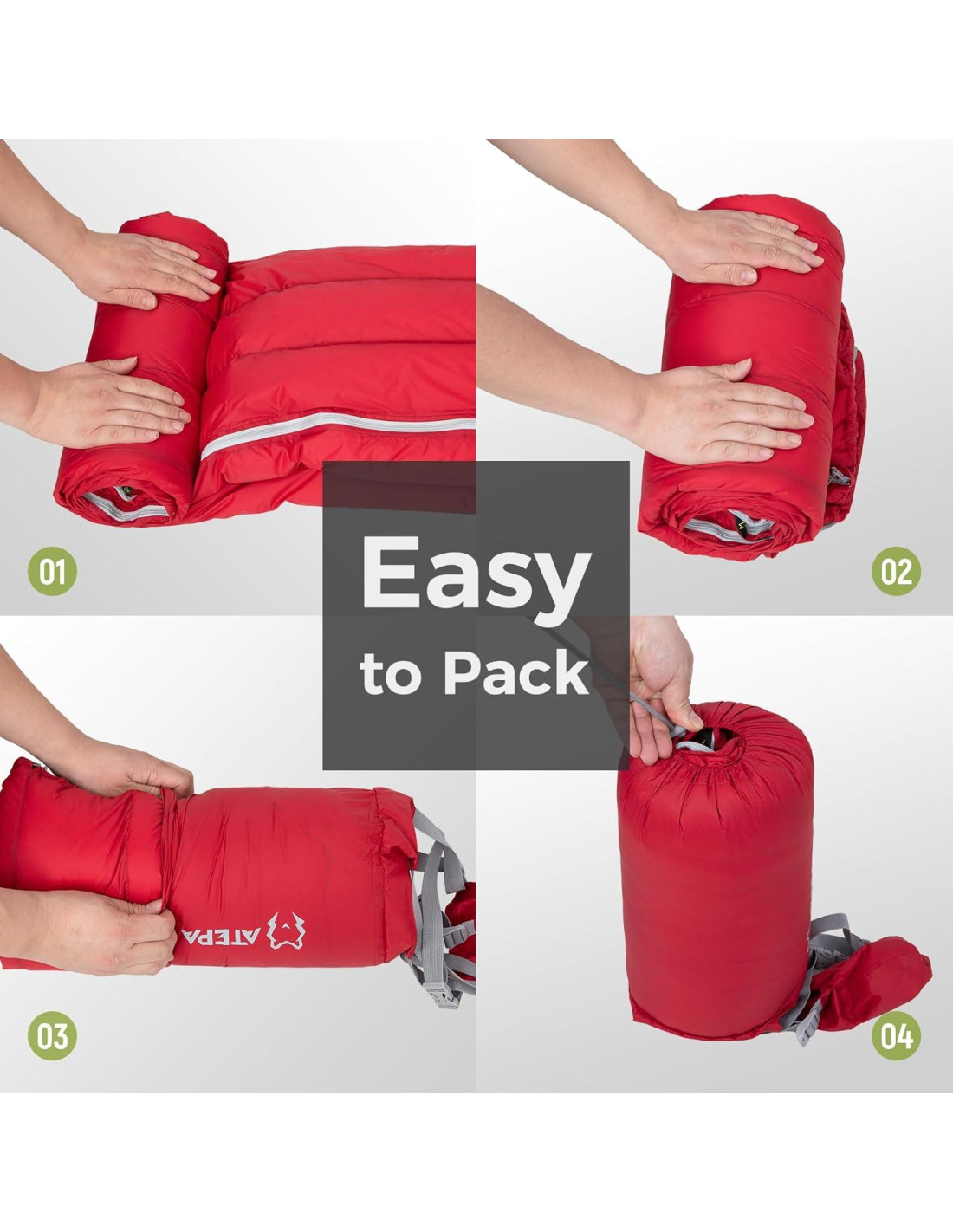 Saco de dormir ATEPA para adultos, 650FP ultraligero 3 estaciones compacto y plegable con saco de compresión para acampar, hacer senderismo y excursiones
