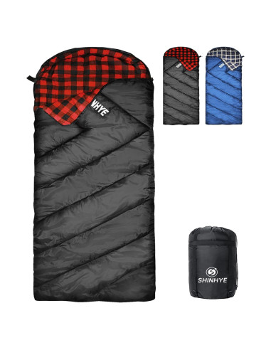 - Saco de dormir grueso: La temperatura de confort del saco de dormir es 30F (0C), la temperatura límite es 14F (-10C), cuando la temperatura mínima alcanza 0F (-18C), recomendamos usarlo junto con otros dispositivos de calentamiento. A diferencia de otros sacos de dormir para senderismo y camping en el mercado, el saco de dormir de franela de algodón ShinHye tiene un peso total de 7.5 lbs (3.4 kg), y la capucha estilo momia de media circunferencia te mantiene caliente en climas fríos.