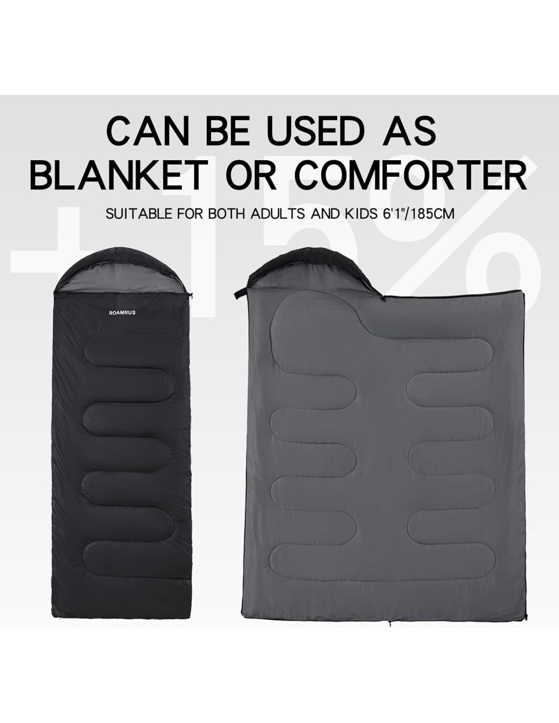 - [Tamaño universal] : Acomodando durmientes de hasta 6'1" (86.61"x32.68"), estos sacos de dormir convertibles se transforman en edredones de tamaño twin, haciéndolos sacos de dormir versátiles para camping en coche, kits de preparación para emergencias o soluciones de cama para invitados.