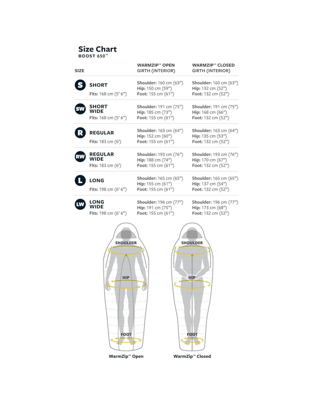 - Un rango de tamaños inclusivo que incluye tamaños amplios para cada longitud, así como el zipper WarmZip centrado, aumenta la comodidad para personas con hombros anchos, aquellos que se mueven mucho y todos los que quieren más espacio que un saco de dormir momia tradicional