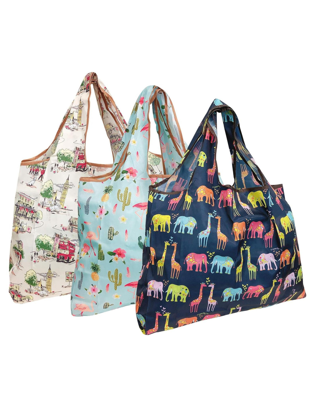 Estas elegantes bolsas reutilizables son extra grandes y espaciosas; perfectas para llevar comestibles, ir de compras, usarlas como mochila o bolsa de almuerzo, y cualquier otro uso que tengas para ellas. Super duraderas por naturaleza, estas bolsas pueden llevar hasta 19.96 kilogramos (44 libras), son impermeables y se pueden usar una y otra vez. Nunca más uses bolsas de plástico, que solo se pueden usar una vez. Estas bolsas reutilizables pueden ayudarte a reducir tu huella de carbono al disminuir tu consumo de plástico. Elige entre diseños elegantes que mostrarán tu personalidad. Cuando no estén en uso, puedes convenientemente doblar la bolsa en el bolsillo interior, guardándola de manera conveniente. Vendidas como un juego de 3. Las bolsas de plástico contaminan nuestro medio ambiente y solo se pueden usar una vez. Los animales marinos a menudo confunden los desechos plásticos, como las bolsas de plástico, con comida. También a veces terminan atrapados en los desechos plásticos que tiramos cuando llegan a nuestros océanos y ríos. Ayuda a hacer la diferencia reduciendo el consumo de plástico; ¡usa bolsas reutilizables en su lugar! Las bolsas reutilizables se pueden usar una y otra vez a diferencia de las bolsas de plástico que a menudo solo se usan una vez.