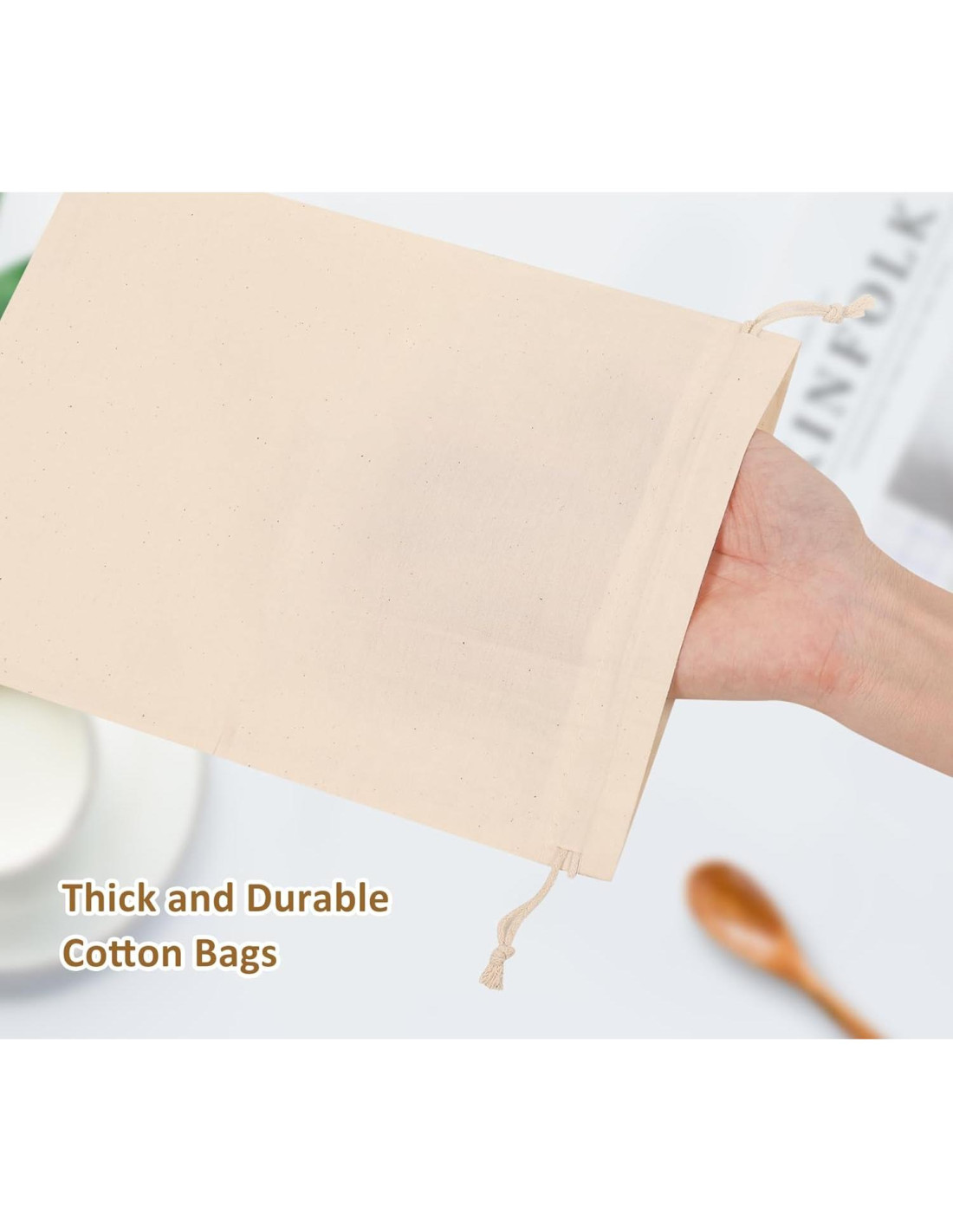 - 1. Tamaño Amplio y Práctico: Con medidas de 20.32x25.4cm, estas bolsas de algodón para productos ofrecen amplio espacio para una variedad de artículos, haciéndolas ideales para almacenar frutas, verduras, granos u otros artículos del hogar. El tamaño generoso asegura versatilidad en su uso.