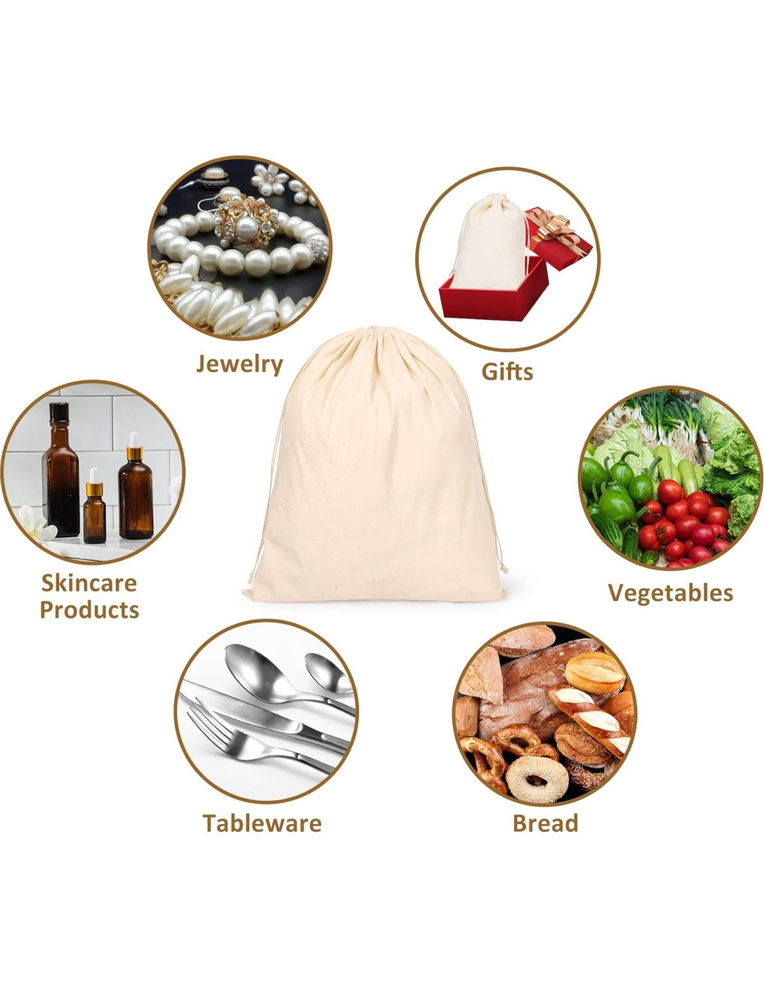 - 5. Cierre de Cuerda para Conveniencia: Cada bolsa cuenta con un práctico cierre de cuerda, asegurando que sus artículos estén seguros mientras proporciona fácil acceso. El cierre de cuerda añade un toque de simplicidad y funcionalidad a estas bolsas de almacenamiento de muselina reutilizables.