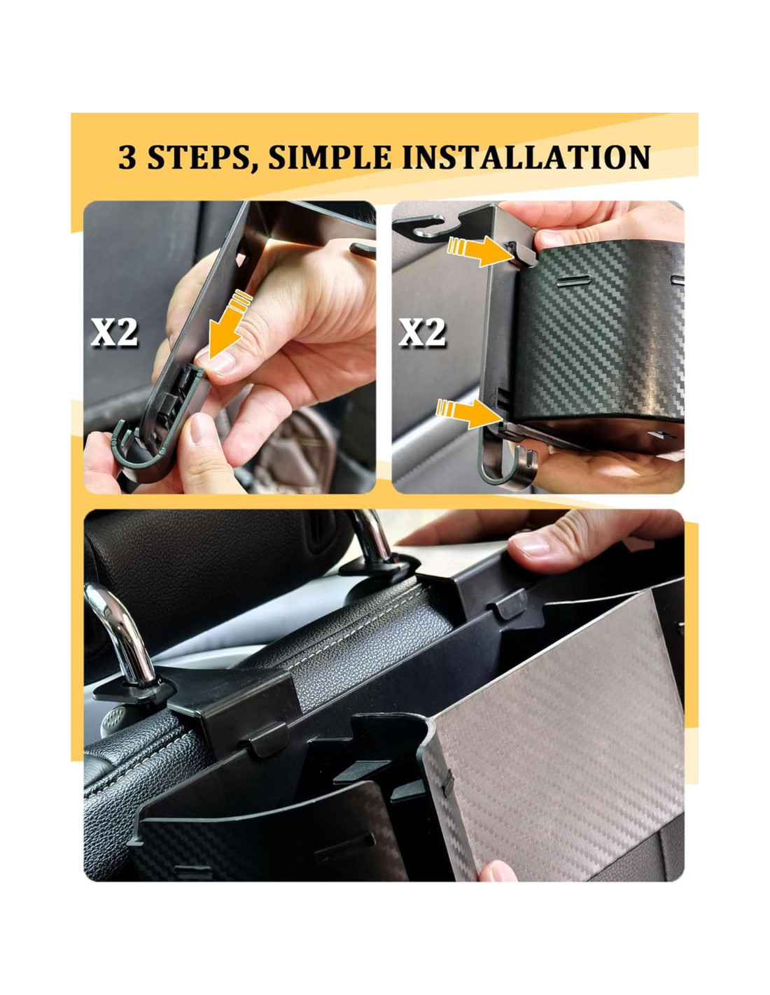 - AMPLIA COMPATIBILIDAD Y COMODIDAD: El organizador de respaldo de asiento para reposacabezas JETOO con soporte para 2 tazas está equipado con 3 tamaños de ganchos, adecuado para el 95% de los autos, SUV, camiones y otros modelos de vehículos en el mercado. ¡Nota! Este producto es adecuado para asientos con pilares de reposacabezas. No es adecuado para asientos sin pilares de reposacabezas (no adecuado para reposacabezas cuadrados). Al sentarse en el asiento delantero, no sentirá la presencia de los ganchos del auto, lo que no afectará la comodidad del viaje.