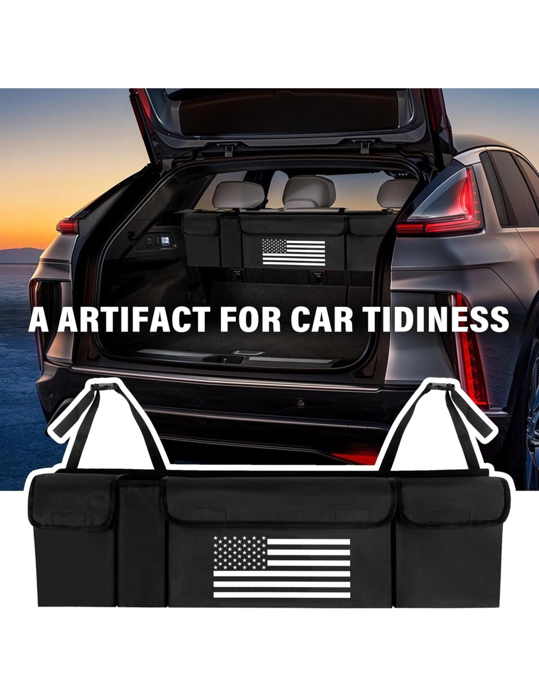 - [Almacenamiento de coche diseñado de manera única] : Este organizador de maletero de coche viene en una variedad de colores para que elijas, así que puedes seleccionar tu color favorito según tu estilo. También hay un diseño de bandera americana en la superficie, después de colgarlo en el asiento trasero de tu coche, para que puedas verlo cada vez que abras el maletero y te brinde una experiencia cómoda.