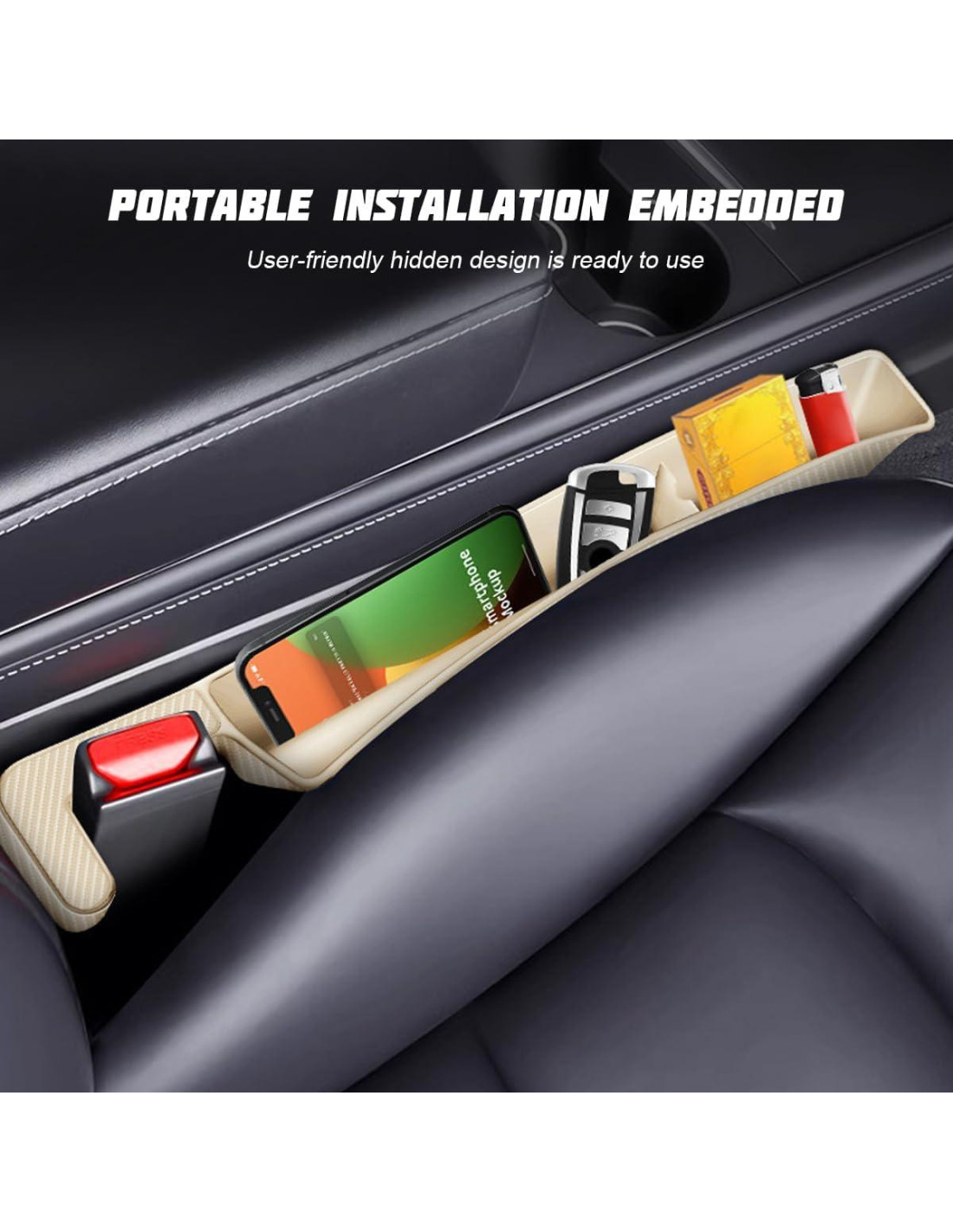 - Relleno de Espacio: Esta caja de almacenamiento de tapón de costura de asiento de coche se ajusta eficazmente al espacio entre el asiento del coche y la consola central, lo que evita que los objetos caigan en lugares de difícil acceso. No solo retiene la ubicación del cinturón de seguridad que no cubre los ganchos de seguridad del coche, sino que también deja espacio para asegurar que no interfiera con los ajustes del asiento o el uso del cinturón de seguridad, es conveniente y seguro.