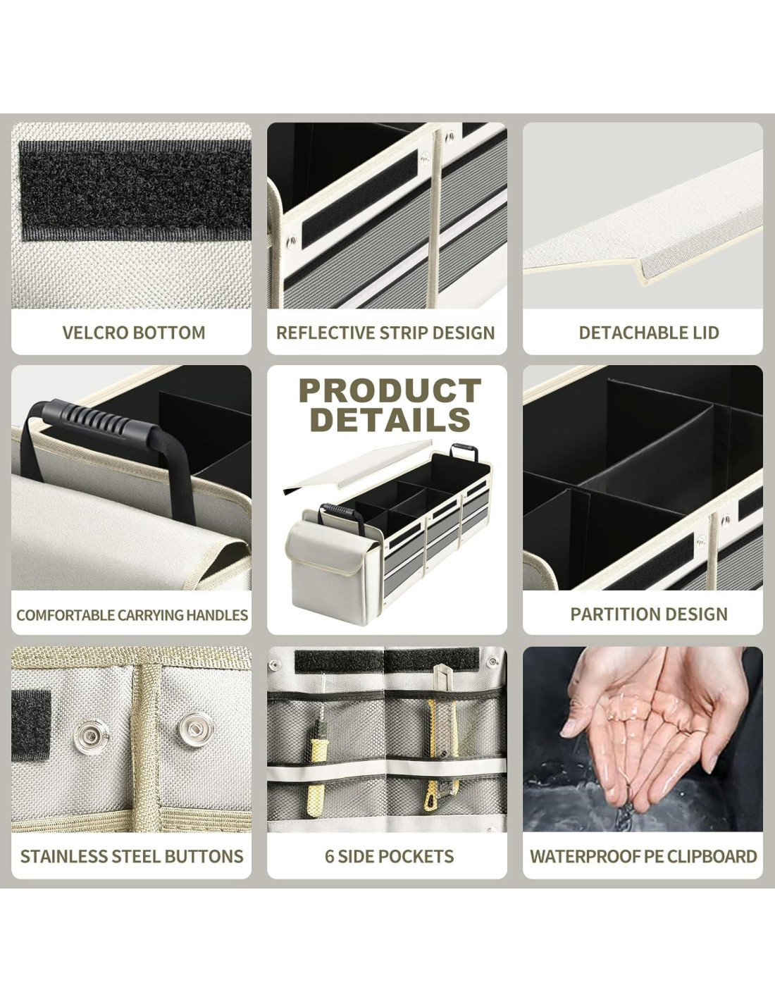 - Fácil de limpiar: Este almacenamiento de maletero es súper simple de ensamblar y plegar. Limpia la superficie con un paño húmedo para limpiarlo (La caja de almacenamiento beige es fácil de ensuciar, y es fácil que produzca manchas durante el embalaje, se puede limpiar, por favor elige con cuidado).