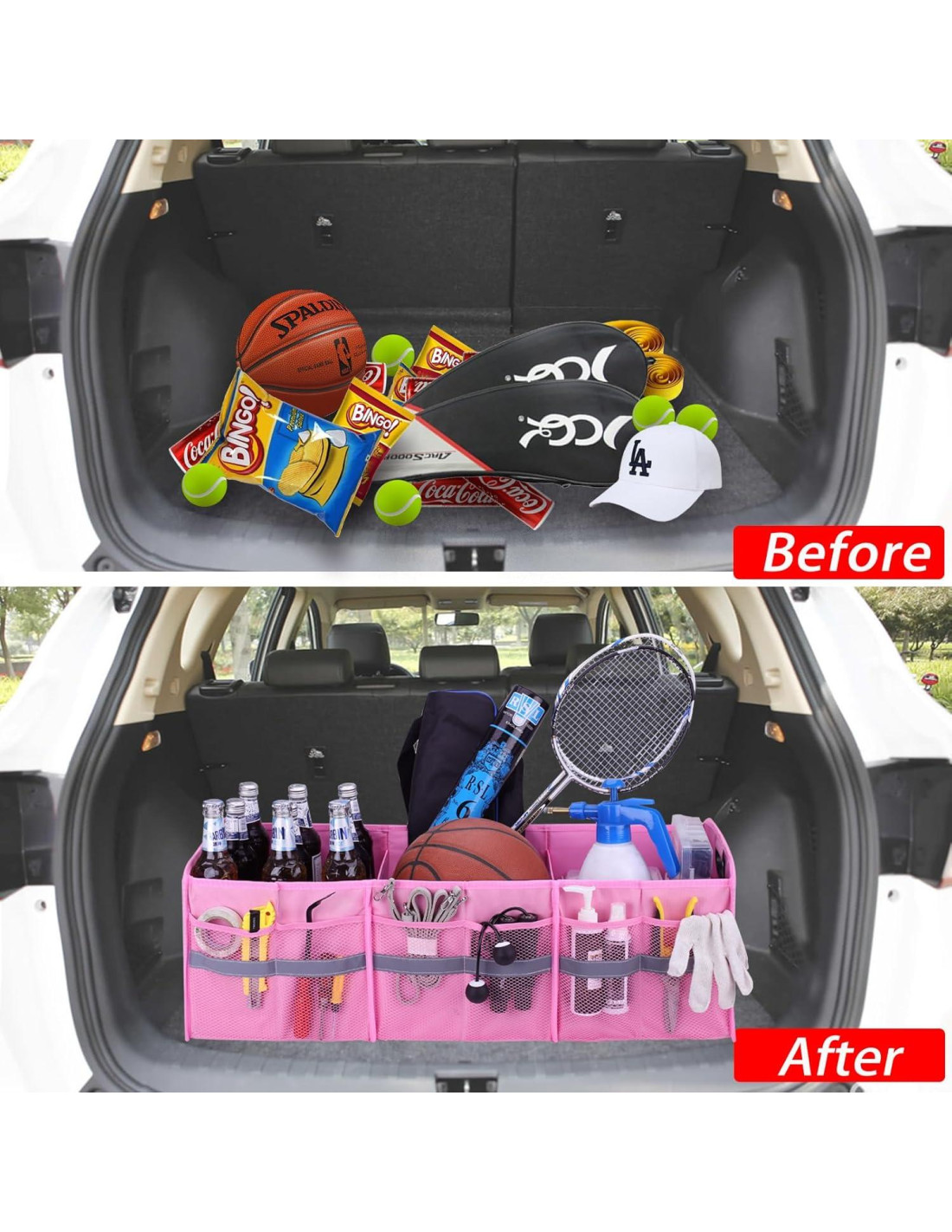 - Almacenamiento Multifuncional: Un tamaño perfecto para tu coche, lo suficientemente completo para almacenar todas tus cosas, puedes poner agua, bocadillos, toallas, juguetes de niños, comestibles, este organizador de almacenamiento para coche ayuda a mantener el maletero trasero limpio y organizado