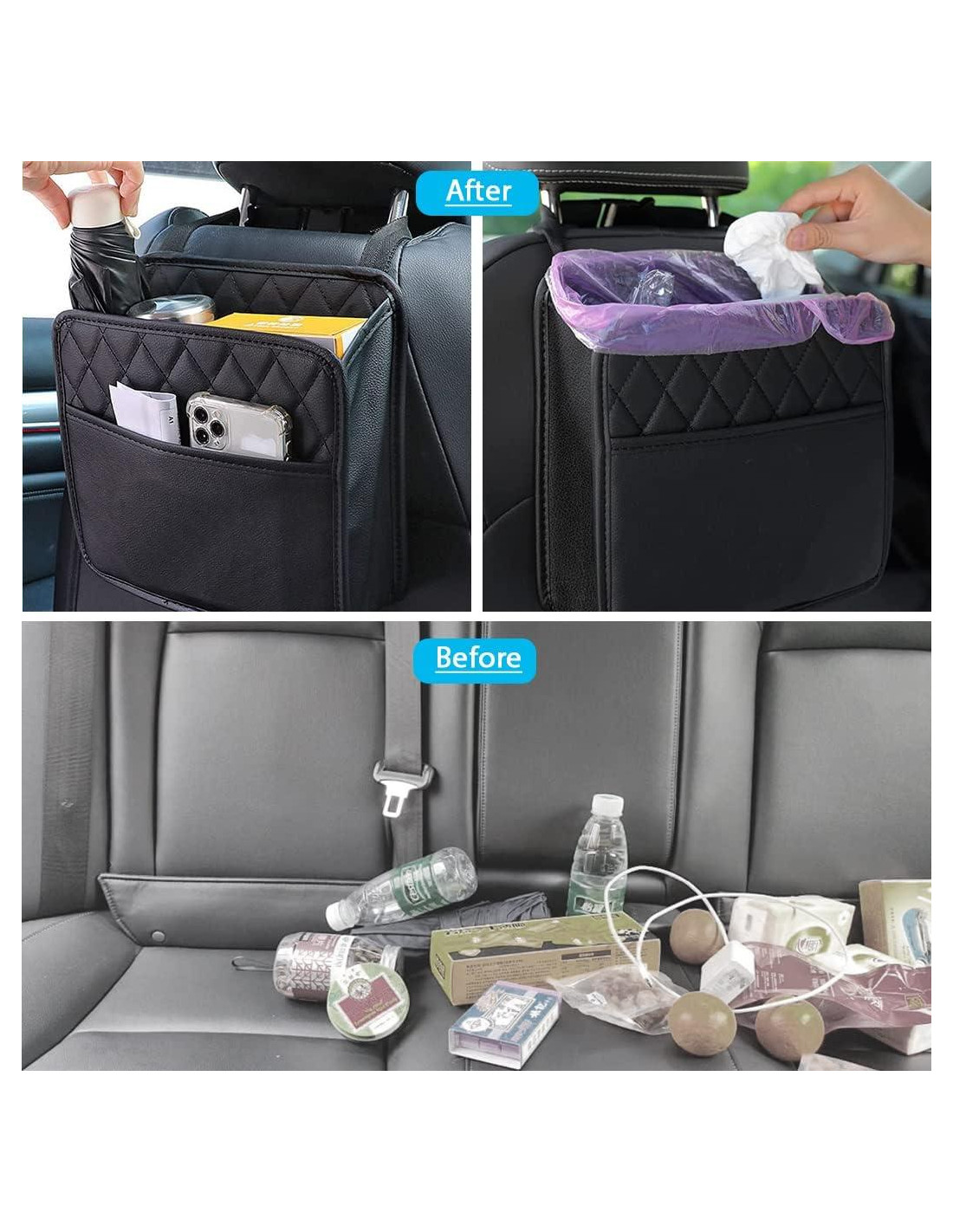 - Limpieza Rápida: Simplemente deslice una bolsa de basura sobre el organizador para convertirlo en un basurero temporal; De esta manera, puede deshacerse fácilmente de la basura en la parte trasera de su asiento y mantener su coche limpio e higiénico en todo momento