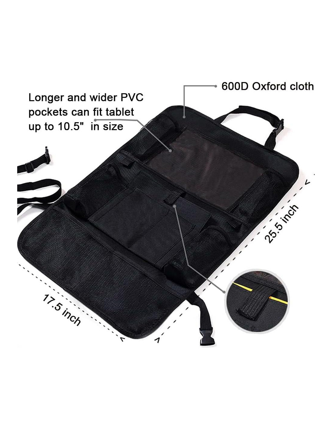 - [Diseño de Múltiples Bolsillos] - el organizador de asiento de coche cuenta con 9 compartimentos, incluyendo un bolsillo de PVC transparente táctil diseñado para sostener una tableta iPad, y múltiples bolsillos de malla para bocadillos, bebidas, revistas y más.