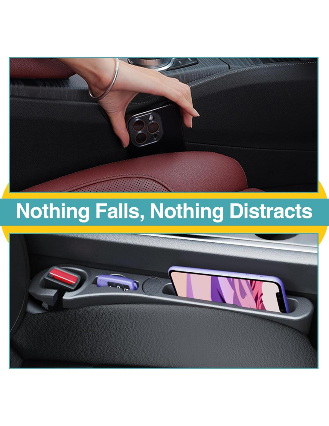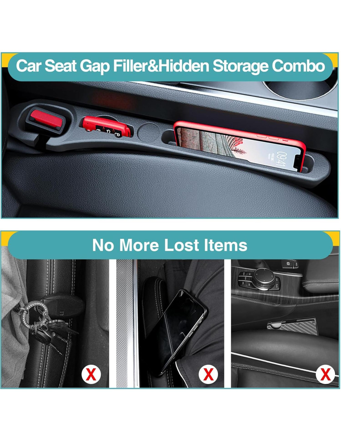 - Protección Excepcional Contra Artículos Caídos: Estos organizadores de relleno para el espacio entre asientos de auto mejorados son extremadamente efectivos para prevenir que los objetos caigan en el espacio entre los asientos del auto. Sostienen de manera segura pequeños artículos como llaves, teléfonos y bocadillos en su lugar. Como un accesorio interior esencial para el auto, aseguran que tu espacio de conducción permanezca ordenado y libre de desorden.