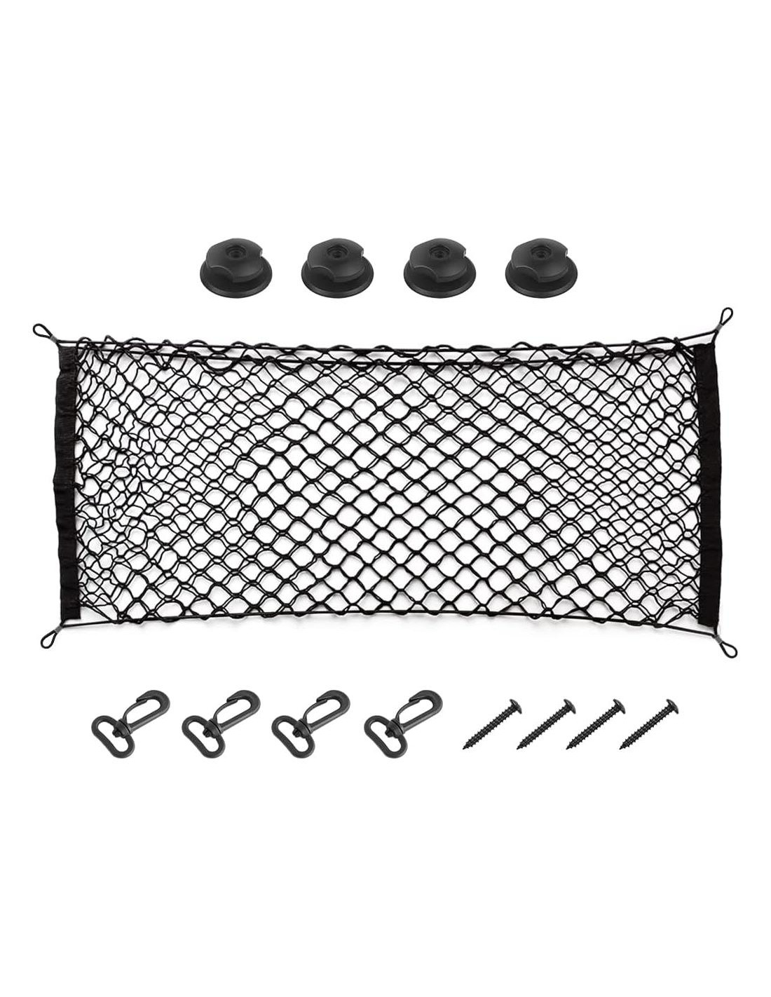 - [Material de Alta Calidad] Nuestra red de carga trasera para auto está hecha de material de nailon con banda de goma, tiene doble malla que es más duradera y firme que otras, y también puedes poner cosas dentro. Estirable con gran elasticidad que puede sostener objetos más grandes y voluminosos dentro.