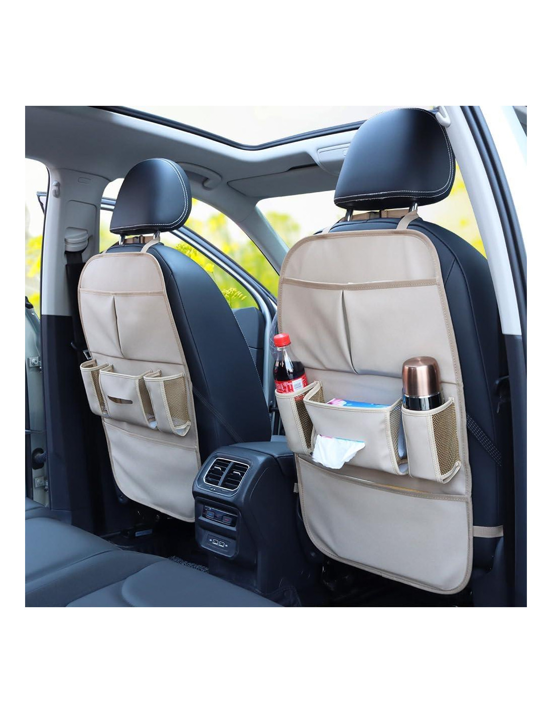 - ALTA CALIDAD Y DURADERO - El organizador de asiento de coche está hecho de cuero de tapicería de coche de alta calidad y fieltro de coche, y la combinación de líneas limpias y regulares y fieltro de alta calidad asegura la alta calidad del organizador de coche para el asiento trasero. Resistente y duradero, fácil de limpiar, solo limpia con un paño húmedo y seca.