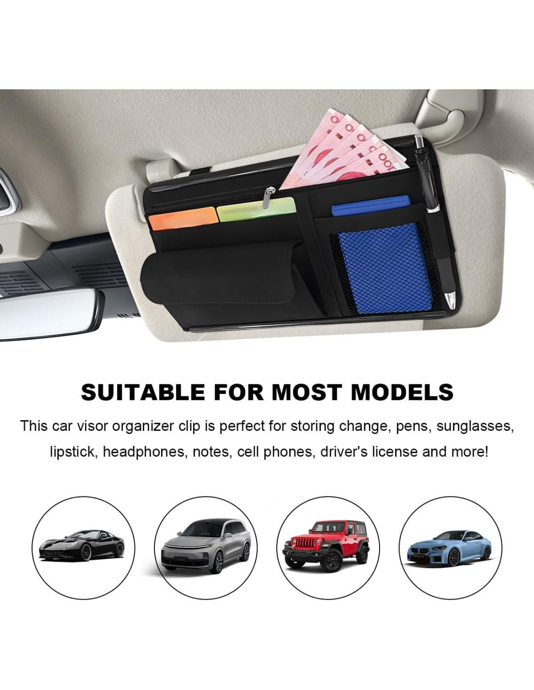 - Uso Versátil: Esta bolsa organizadora se adapta a una amplia gama de tamaños de visera y se puede usar en una variedad de vehículos, como coches, SUV y camiones. Además, se puede usar en oficinas en casa, talleres e incluso armarios para organizar y acceder a elementos de uso frecuente.