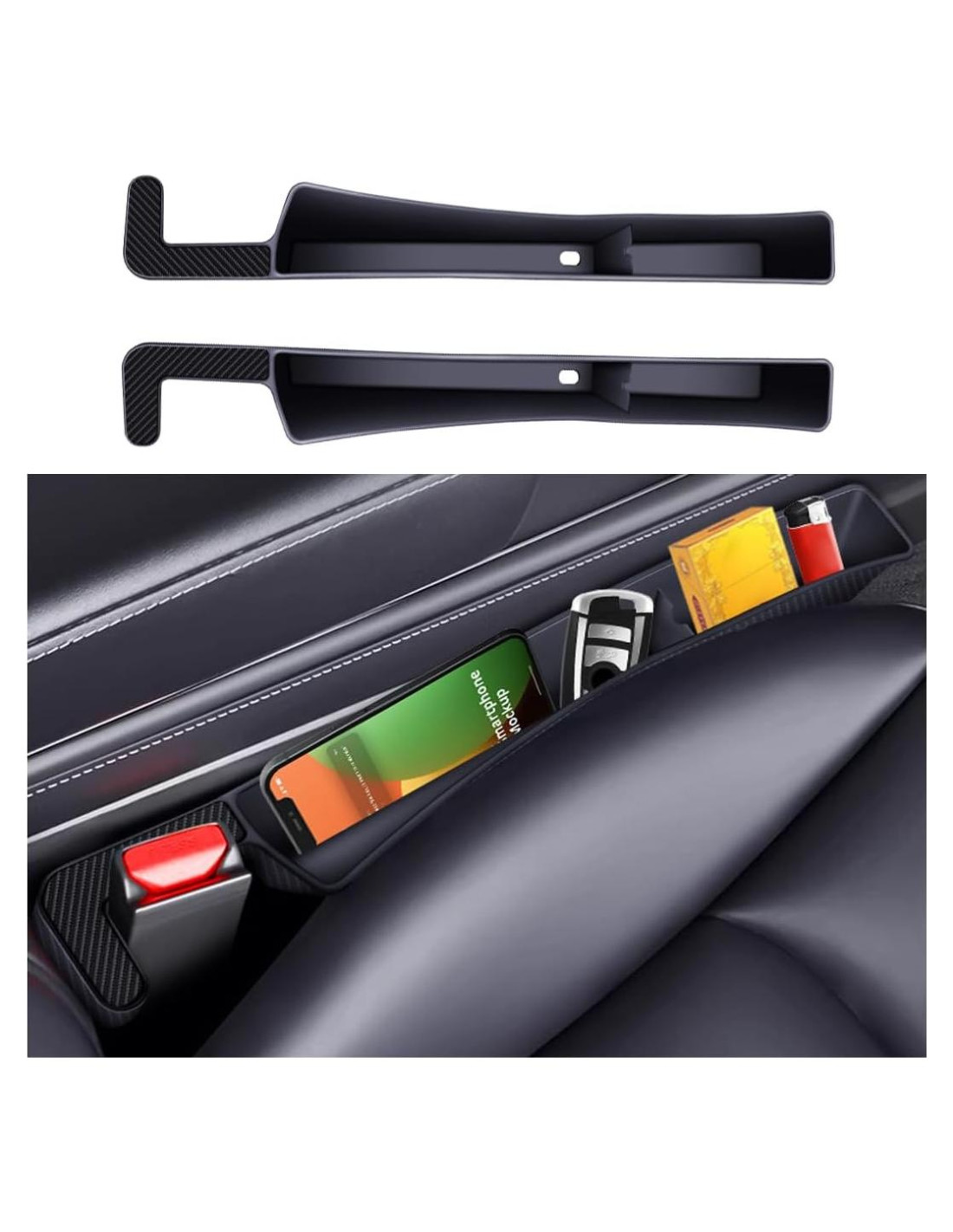 - Relleno de Espacio: Esta caja de almacenamiento de tapón de costura de asiento de coche se ajusta eficazmente al espacio entre el asiento del coche y la consola central, lo que evita que los objetos caigan en lugares de difícil acceso. No solo retiene la ubicación del cinturón de seguridad que no cubre los ganchos de seguridad del coche, sino que también deja espacio para asegurar que no interfiera con los ajustes del asiento o el uso del cinturón de seguridad, es conveniente y seguro.