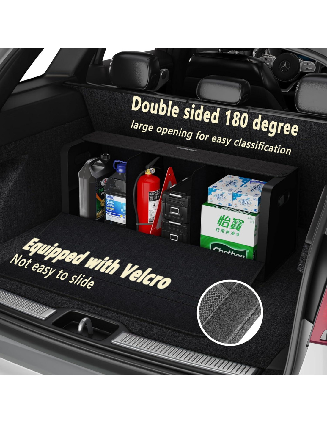 - [Plegable y Ajustable]-Diseño de organizador de maletero de automóvil GMQ que ahorra espacio, diseño creativo que se pliega cuando no está en uso. El compartimento interno extraíble puede satisfacer varios requisitos de almacenamiento. El grosor es de solo 8.5CM.