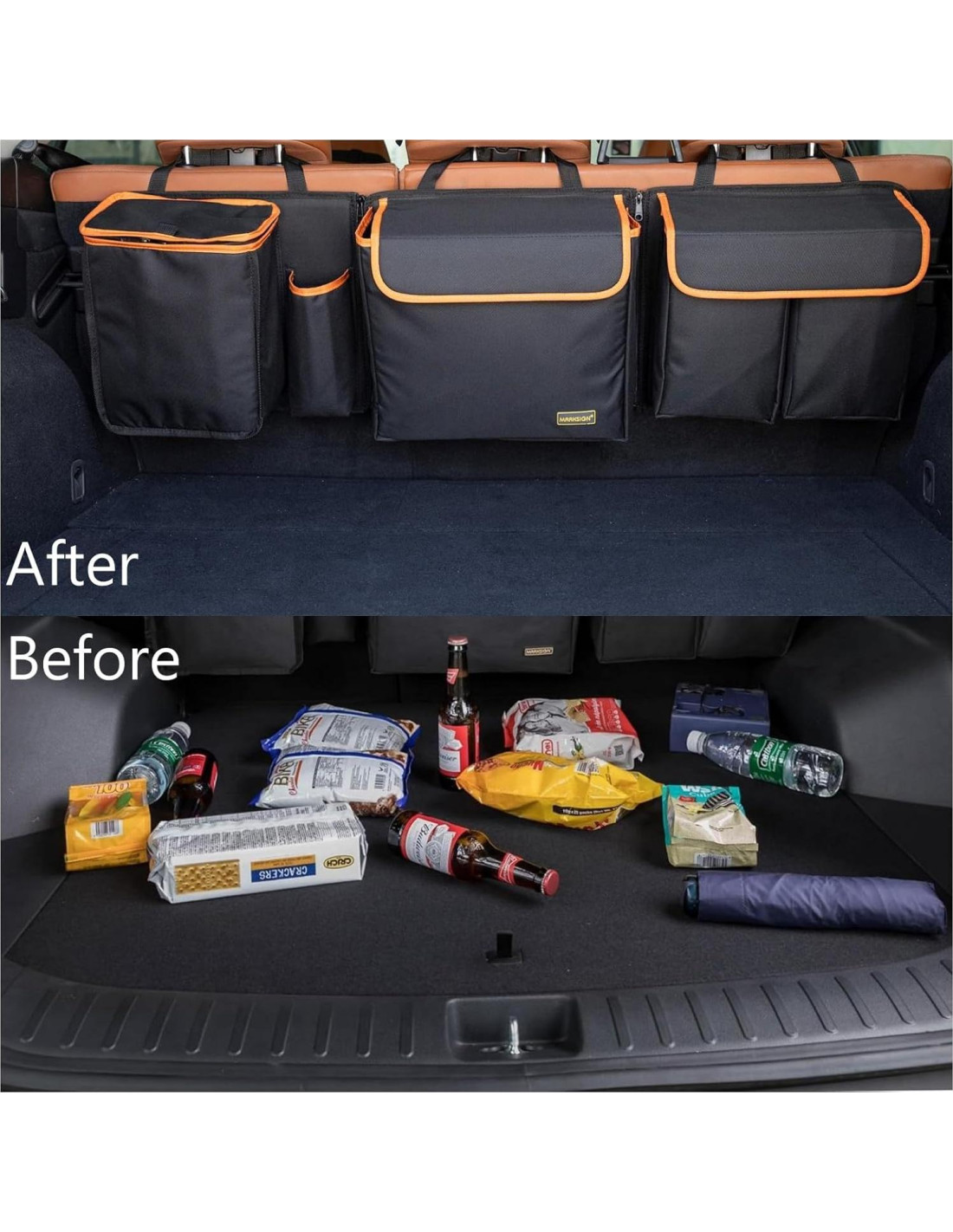 - Ahorra Tu Valioso Espacio en el Maletero: Simplemente cuélgalo en los postes del reposacabezas de tu asiento trasero en segundos para ahorrar tu valioso espacio de carga en el maletero. Mide la parte trasera de tu asiento de coche antes de comprar.