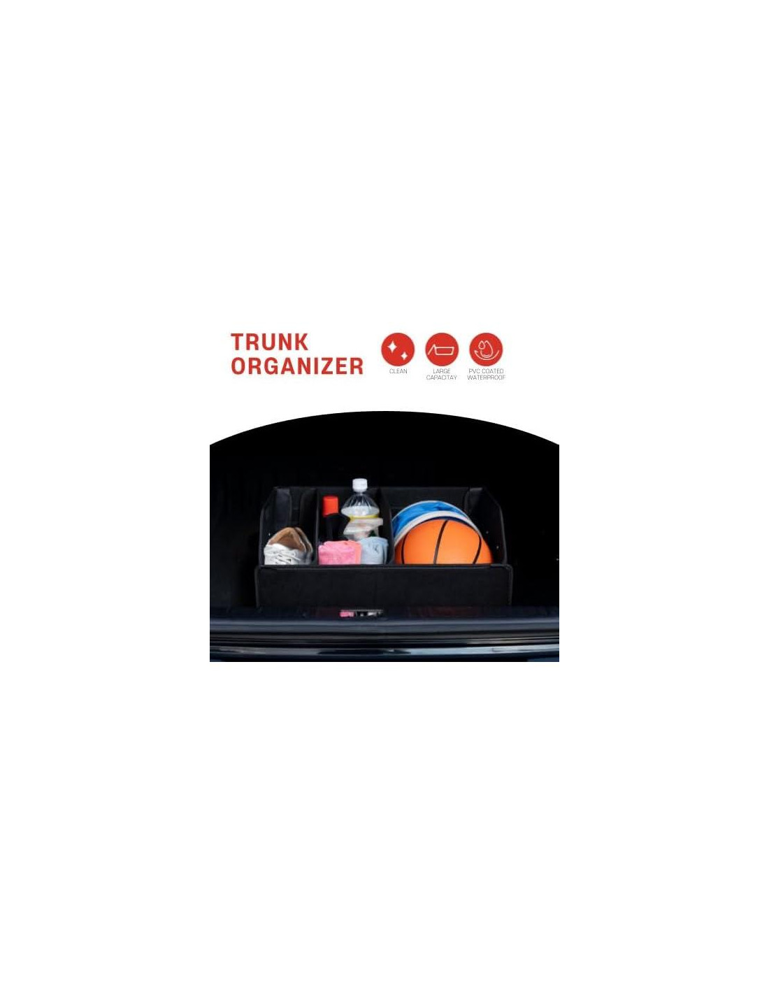 - Espacio maximizado en el maletero: capacidad grande de 50 litros; organizador de maletero ideal con tapa para usuarios de SUV y sedán; sostiene equipo, comestibles y artículos de viaje con facilidad
