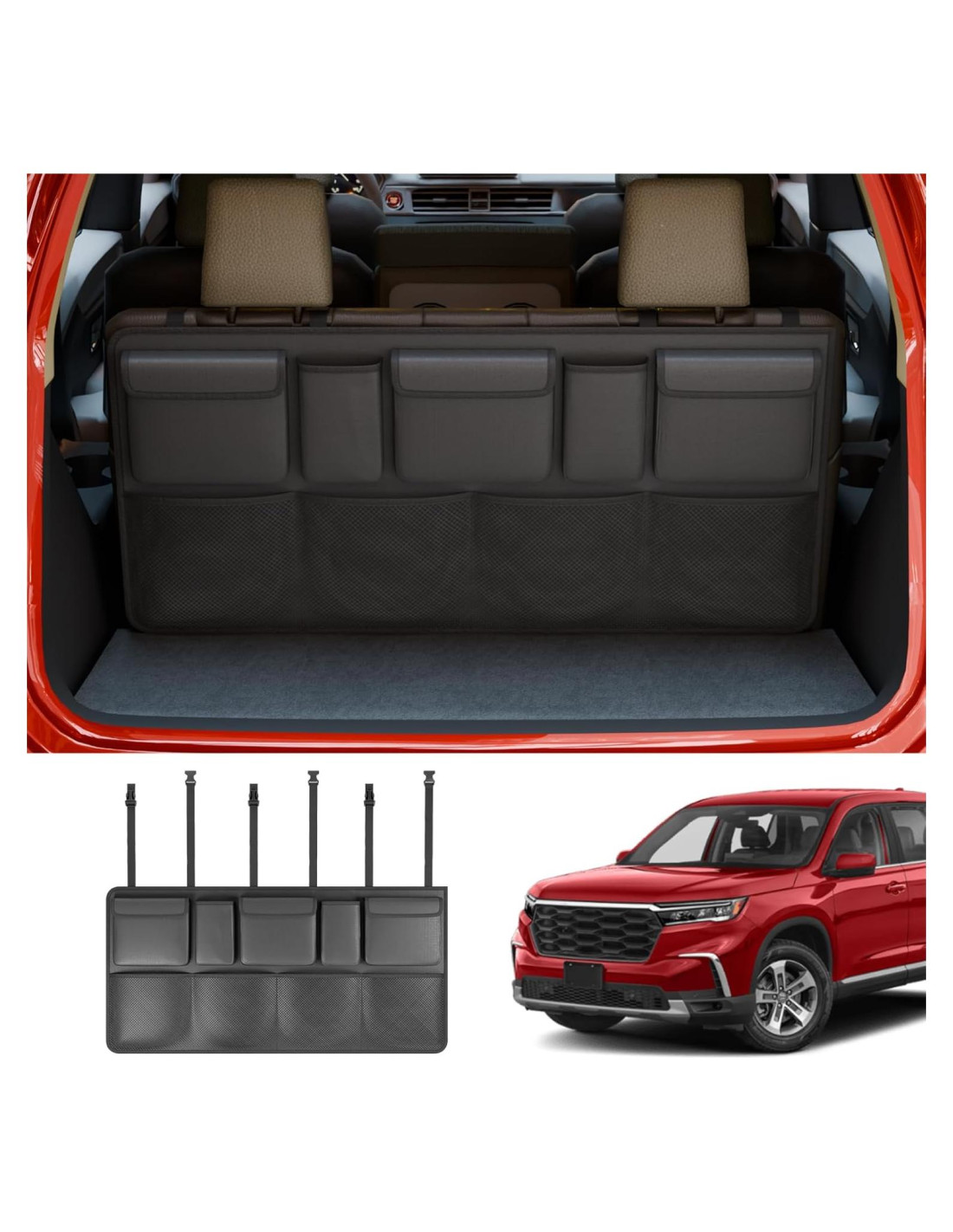 El organizador de maletero está hecho de tela Oxford negra 210D y malla, con una base resistente de Oxford negra 600D. Es impermeable, fácil de limpiar y lo suficientemente fuerte para manejar compras pesadas. Este organizador de maletero mantiene tu coche ordenado con 9 bolsillos. 3 bolsillos grandes con tapas para mantener los artículos libres de polvo y seguros, 4 bolsillos de malla elástica para artículos voluminosos, y 2 bolsillos abiertos para un fácil acceso a los elementos esenciales diarios. Maxzina se dedica a la personalización del Honda Pilot. Maxzina se dedica a la personalización del Honda Pilot. Tenemos un equipo completo de personas con ideas afines para desarrollar, diseñar y fabricar accesorios para el Pilot. Podemos proporcionar a los propietarios de Pilot accesorios de modificación para el coche Pilot. Si deseas modificar tu Pilot, Maxzina es el lugar al que acudir.