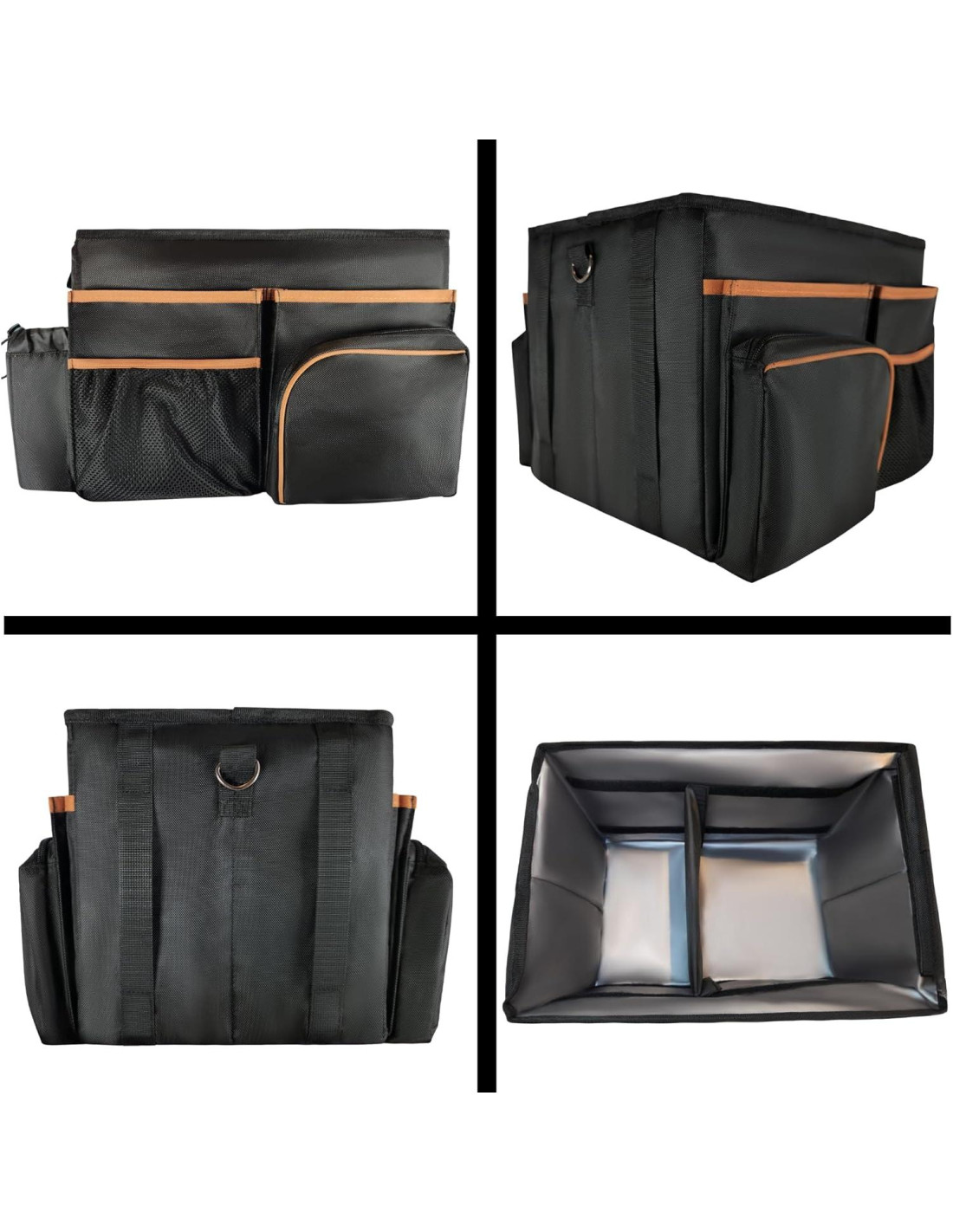 - Construcción Duradera y Reforzada: Fabricado con tela de alta calidad 1680D y forrado con una capa de aislamiento, este organizador está construido para la durabilidad y el uso prolongado. Su estructura reforzada asegura que mantenga su forma, incluso cuando está completamente lleno, mientras que la capa de aislamiento ayuda a mantener la comida y las bebidas a la temperatura deseada, proporcionando una solución de almacenamiento confiable y versátil.