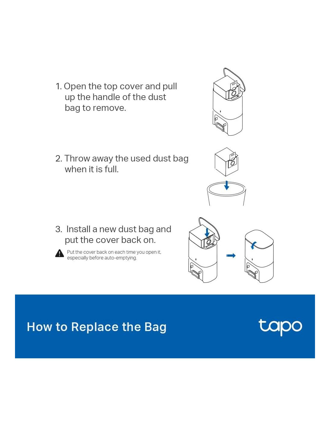 Bolsa de Polvo Desechable para Aspiradora Robot Tapo | Compatible con Tapo RV30 Max Plus, Tapo RV20 Max Plus | Bolsa de Polvo Desechable de 3L x5 | 60 Días de Limpieza Sin Manos | Auto-Sellado al levantar | Configuración Fácil | (Tapo RVA202)