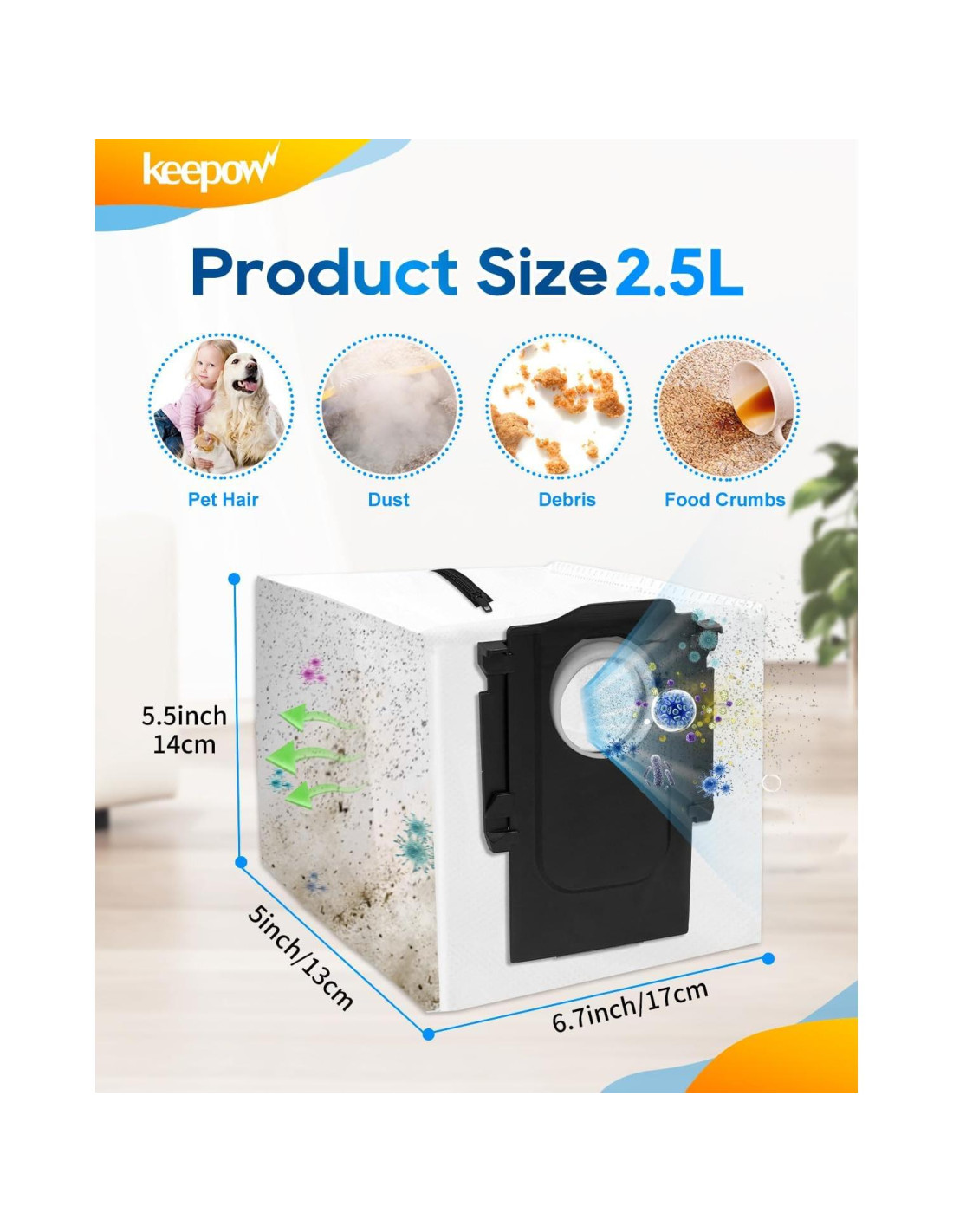 - Gran Capacidad: Un paquete de 3 piezas de bolsas de aspiradora robot, cada bolsa de recolección de polvo tiene una capacidad de 2.5 litros. Es una gran alternativa en relación calidad-precio. Captura eficazmente el polvo, la suciedad y los alérgenos para garantizar un aire interior fresco para hogares y mascotas.